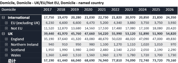 从公布的数据上可以看到,通过UCAS系统提交2026级本科申请的人数达到了79160名,2025年这个数据是73720名,增长了5440名。