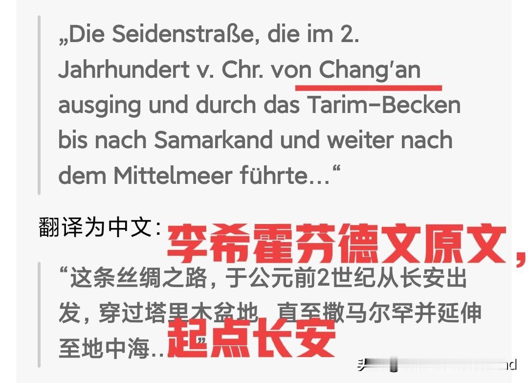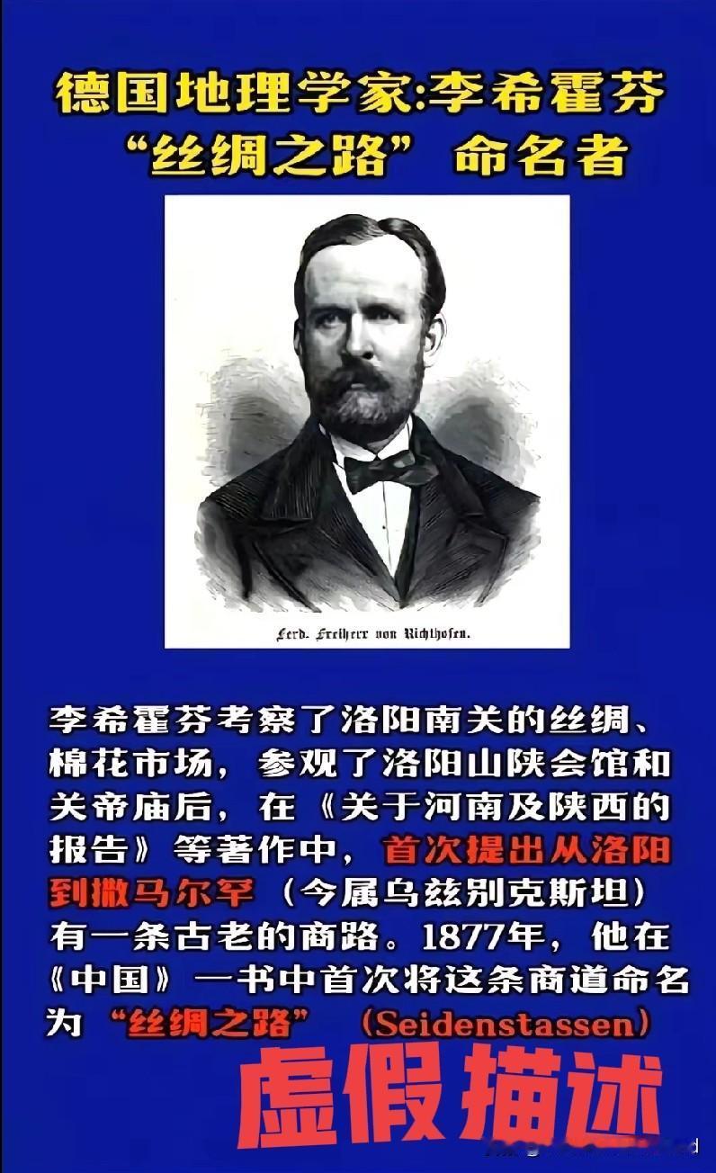 揭穿李希霍芬在洛阳首提丝绸之路的谎言 核心结论:李希霍芬从未在洛阳首提丝绸之路,更未将丝路定义为“从洛阳到撒马尔罕”,网传“李希霍芬把从洛阳到撒马尔罕的贸易路线命名为丝绸之路”的说法,是对史实的刻意歪曲,可从“提出背景、原始定义、路线界定”三方面彻底证伪。 一、谎言核心:编造“从洛阳到撒马尔罕”的虚假定义 当下流传最广的错误说法称:“德国地理学家李希霍芬在洛阳考察时,将从中国古都洛阳到乌兹别克撒马尔罕的丝绸贸易路线,正式命名为丝绸之路”。这一说法完全割裂了李希霍芬提出丝路概念的历史背景与原始文本,把“洛阳”偷换为起点、将“撒马尔罕”歪曲为丝路终点,甚至混淆了“概念提出地”与“路线起点”,是三重史实错误的叠加,却被刻意传播成为误导公众的核心说辞。 二、三重铁证,戳穿“洛阳到撒马尔罕”的虚假表述 1. 概念提出地与洛阳无关,更非“现场定名” 李希霍芬1870年曾在洛阳短期考察,但其仅为丝路相关素材的收集,而“丝绸之路”概念是他1872年返回德国后,于1877年在柏林出版的《中国》第一卷中正式提出,全程与洛阳无任何关联,更不存在“在洛阳将洛阳到撒马尔罕的路线定名丝路”的说法。 2. 原始定义无“洛阳”,起点唯一指向长安 李希霍芬在原著中明确界定,丝绸之路是**“公元前114年—公元127年间,以汉都长安为起点,经河西走廊、帕米尔,至撒马尔罕并延伸至地中海的贸易路线”,德文原文中直接用Ausgangspunkt(起始点) 标注长安,而洛阳仅被记为Knotenpunkt(枢纽节点),从未出现在核心起点定义中,更无“从洛阳到撒马尔罕”的任何表述。 甚至其原著中专门提及:“河南府(洛阳)在后世历史中为丝路枢纽,但绝非这条贸易路线的原始起点”,直接否定了“洛阳起点说”的核心依据。 3. 路线核心是“长安到地中海”,撒马尔罕仅为中亚枢纽 李希霍芬定义的丝路核心路径是**“长安—河西走廊—帕米尔—撒马尔罕—地中海”**,撒马尔罕只是中亚段的关键节点,并非丝路终点;而错误说法刻意截断路线,编造“洛阳到撒马尔罕”的虚假表述,既抹去了长安的起点地位,也歪曲了丝路横跨亚欧的完整脉络,与原始定义完全相悖。 三、错误说法的本质:偷换概念的刻意歪曲 为何会出现“洛阳到撒马尔罕”的虚假表述?本质是部分主体为强化洛阳丝路起点的叙事,刻意做了三层偷换: 1. 偷换时间线:将东汉洛阳作为丝路阶段性枢纽的史实,歪曲为西汉丝路开创起点,无视李希霍芬定义中“公元前114年张骞凿空”的西汉时间范围; 2. 偷换路线段:将撒马尔罕的“中亚枢纽”定位,歪曲为丝路“终点”,刻意截断“撒马尔罕至地中海”的西段路线,编造“洛阳到撒马尔罕”的虚假完整路线; 3. 偷换概念地:将李希霍芬“洛阳考察”的素材收集行为,歪曲为“洛阳定名”的概念提出行为,混淆“考察地”与“定义地”的基本事实。 而这一错误说法,也与2014年联合国教科文组织“丝绸之路:长安—天山廊道的路网”申遗定论直接冲突——申遗文件明确载明“路网以长安为东端起点”,即便提及长安、洛阳为汉唐都城,也未改变“长安为开创起点”的核心定义,洛阳仅为丝路发展中的重要延续节点,从未被认定为“从洛阳到撒马尔罕”的路线起点。 四、结语 尊重历史,必先尊重原始史料。李希霍芬的学术定义、联合国教科文组织的权威定论、张骞凿空的历史本源,均指向一个事实:长安是丝绸之路的开创起点,撒马尔罕是中亚枢纽,洛阳是东汉至北魏时期的丝路延续节点。 编造“李希霍芬将从洛阳到撒马尔罕的路线命名为丝绸之路”的谎言,既是对李希霍芬学术成果的不尊重,也是对丝路历史的歪曲。丝路的价值在于其开放包容的文明脉络,而非单一城市的“名分争夺”,唯有坚守史实,才能真正传承丝路的文化内核。