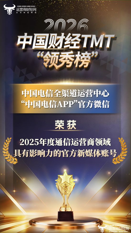 盛典现场,运营商财经网正式公布了获奖企业的名单。其中,“中国电信App”官方微信凭借出色的表现,荣获了“2025年度通信运营商领域具有影响力的官方新媒体账号”奖项。