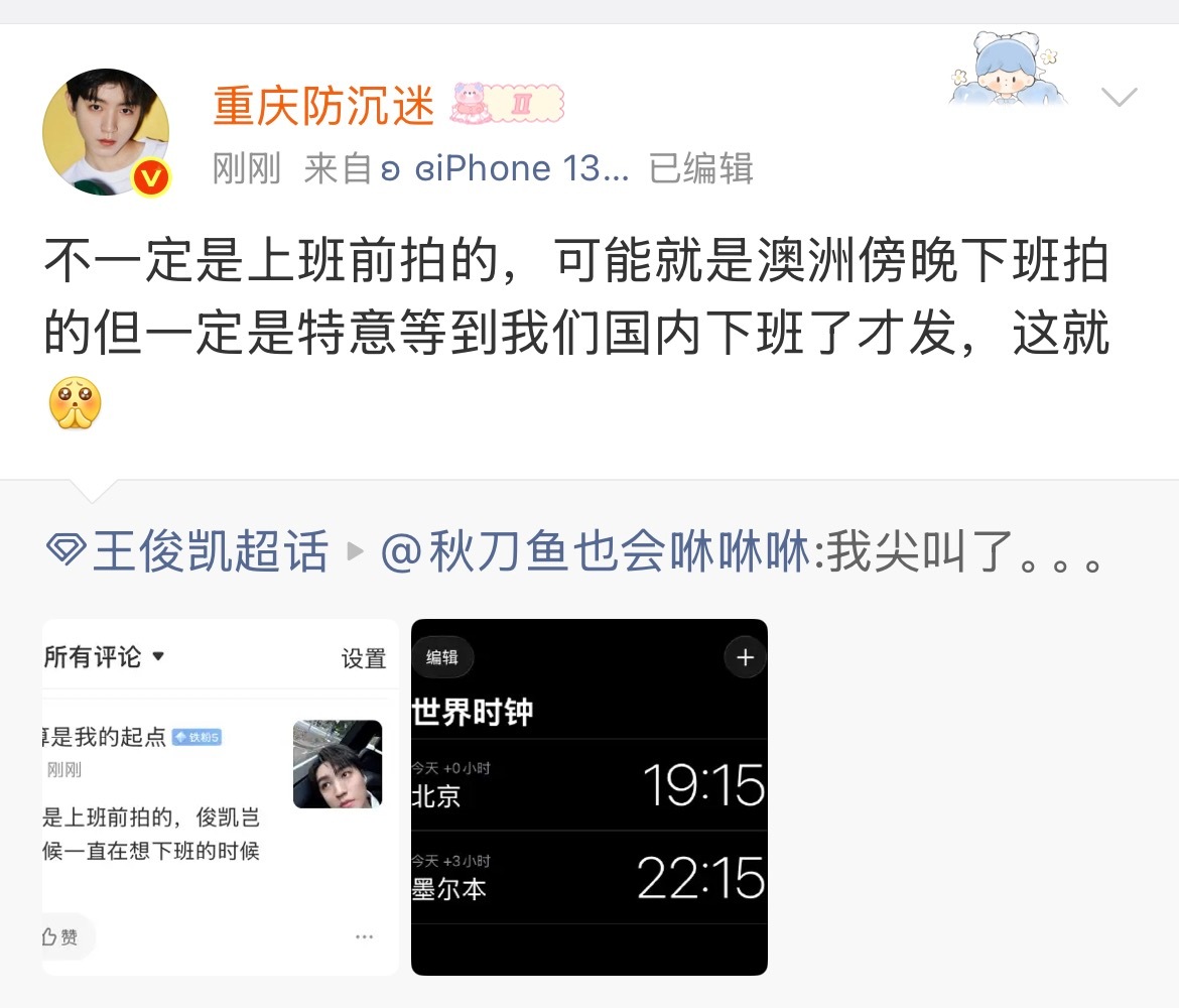 隔着时差特意等到国内也下班才发“下班了ao~”,发的还是微博不是ins,以及之前