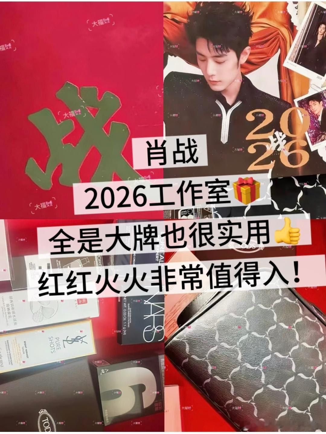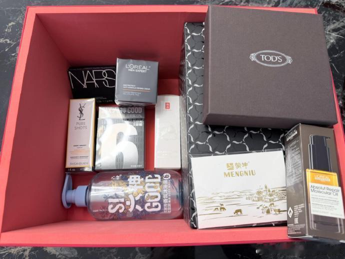 肖战2026工作室的礼盒拆箱!今天的刘铮亮太太太可爱了 TODS礼盒,NARS大白饼,YSL夜皇后精华,欧莱雅男士面霜,欧莱雅Pro精油,羽西防晒,蒙牛奶卡,李宁礼盒,六神花露水和沐浴露!好羡慕~怎么才能🉐到!今天的刘铮亮太太太可爱了