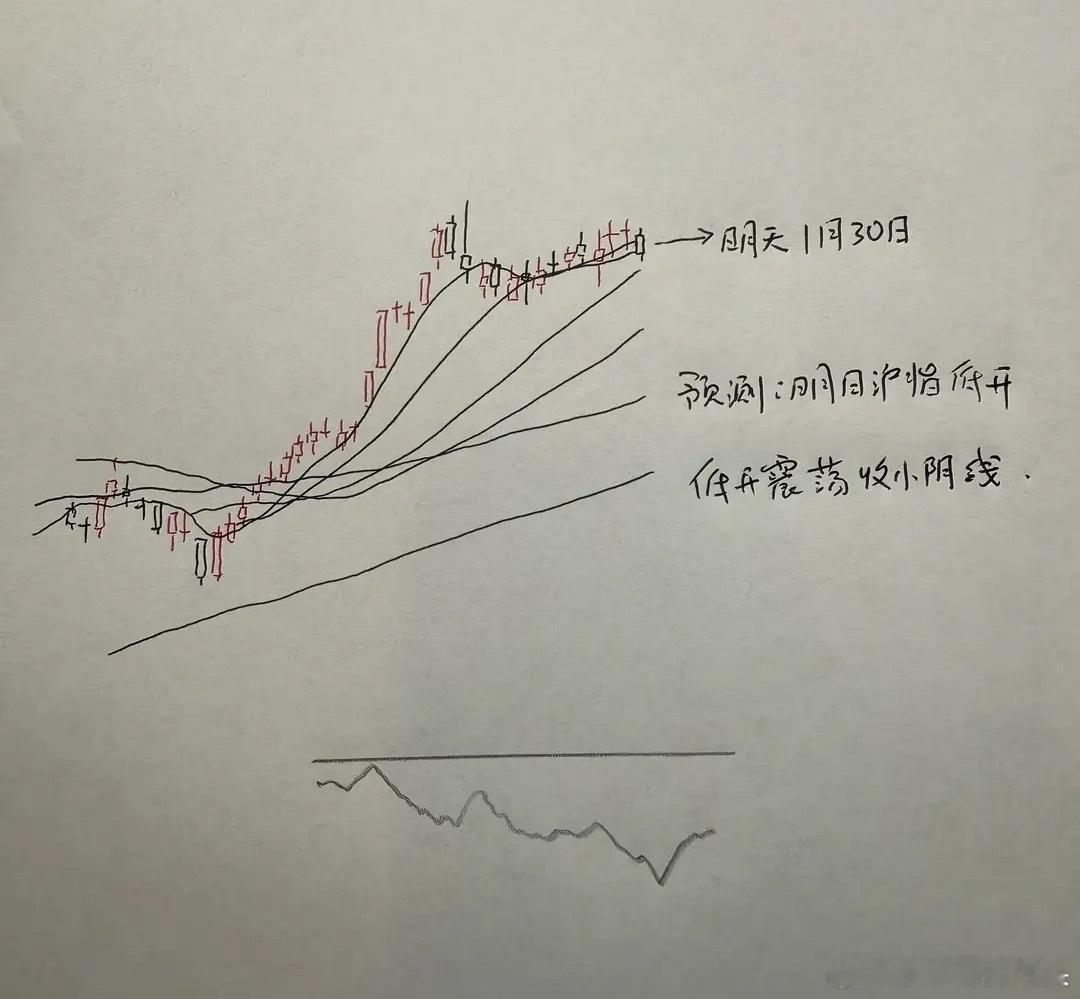 今天又是涨指数个股跌了一天,明天A股怎么走?到底是涨是跌?莎莎讲三个具体理由:第一,今天三市的成交额到达3.26万,昨天的成交额是3.28万亿,前一天的成交额是2.99万亿,大前天的成交额是3.2万亿。最近四五个交易日以来,我们可以看到三市的成交额大幅度的增加,但是在这种增量的情况下,上证指数的涨幅却非常的有限,由此我们可以得出一个相对清晰的判断,上证指数在当前位置已经出现了明显的放量滞涨的迹象。第二,代表小盘个股走势的中证2000指数,今天跌1.21%,今天三市下跌的家数3500多家。我们可以看到最近几个交易日,每一天下跌的家数都在3500家左右。这代表了小盘题材个股正在持续的调整。关注我的朋友都知道,我在本周星期二中证2000指数长下影线出来的时候,就明确告诉大家,这一根高位的长下影线大家请看图一,往往会有二次探底,二次确认的动作。这说明什么?这说明也许小盘题材个股的调整可能还需要延续1~2个交易日。第三,今天白酒板块大涨的同时,对应的是硬科技方向,半导体、存储芯片封装方向的大幅调整。最近市场有两条主线那就是硬科技和资源类。我们看到资源类的个股,今天还没有出现明显的调整,但是从今天半导体方向明显调整的情况来看,预计接下来近期连续大涨的资源类的个股也会出现调整,从而会对大盘构成一定的压力。所以综合以上分析,对于接下来市场走势,莎莎的判断是上证指数明天或者走出一颗震荡下行的小实体阴线。那么明天A股到底怎么走?大家请看图二关于明天走势的手绘预测图:最后我想补充一点的是,今天白酒板块的大涨,其实早在我的预判之中,关注我的朋友都知道,在上周星期六的时候,我专门写了一篇文章,讲的就是白酒板块。为什么来写这篇文章呢?其主要的原因是,我发现在上周的时候,大家对于白酒板块已经感到非常的失望,认为白酒板块就是一个无底洞,认为白酒板块还会持续下行。市场对于白酒板块出现了这种非理性的看法,所以我才专门写了这样的一篇文章。重点从日线、周线、月线三个层面分析白酒板块已经跌到位,并且短线止跌反弹的概率非常大。大家还可以去看一下上周星期六,我的文章。大家点赞,评论就是对我这个纯技术派的最大支持。