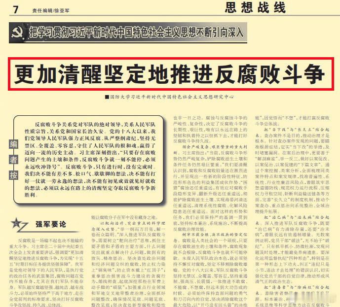 今天《解放军报》的文章中写到——反腐败没有选择,必须知难而进。如果松一松、放一放,腐败问题和不正之风就会反弹回潮甚至变本加厉,军队就有变质变色的危险。由此想到领导2013年1月5日在中央党校的讲话相关内容(刊载于2019年第七期《求是》杂志)。
