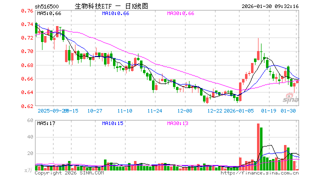 1月30日,生物科技ETF(516500)开盘涨0.00%,报0.653元。生物科技ETF(516500)重仓股方面,药明康德开盘跌0.17%,恒瑞医药跌0.19%,迈瑞医疗跌0.03%,复星医药涨0.00%,上海莱士跌0.31%,百济神州涨0.70%,长春高新跌0.10%,康龙化成跌0.69%,泰格医药涨1.99%,甘李药业跌1.11%。