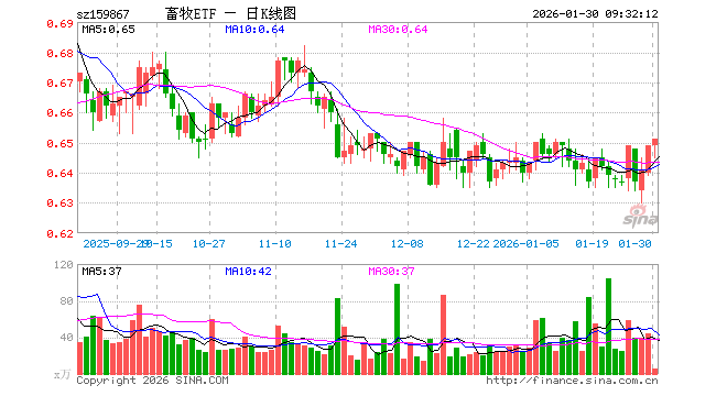 1月30日,畜牧ETF(159867)开盘涨0.00%,报0.649元。畜牧ETF(159867)重仓股方面,牧原股份开盘跌0.50%,海大集团跌0.50%,温氏股份跌0.32%,正邦科技涨0.30%,新希望跌0.45%,梅花生物涨0.00%,生物股份涨0.16%,大北农跌0.68%,圣农发展跌0.12%,立华股份跌0.15%。