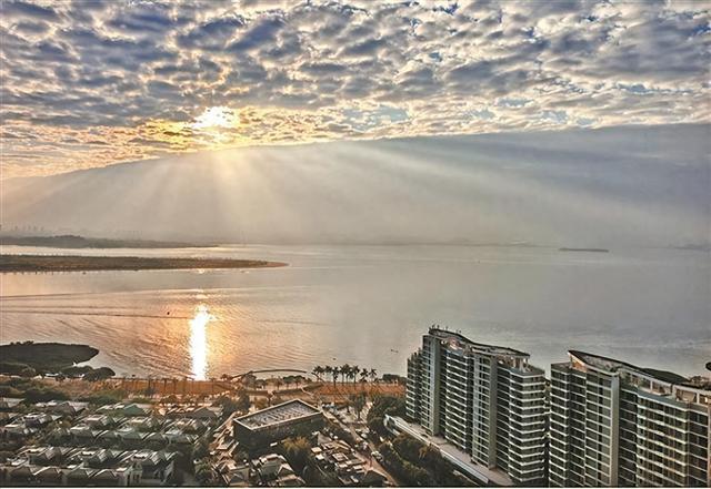昨日早晨厦门天空出现“阴阳天”。(厦门日报记者林铭鸿摄)