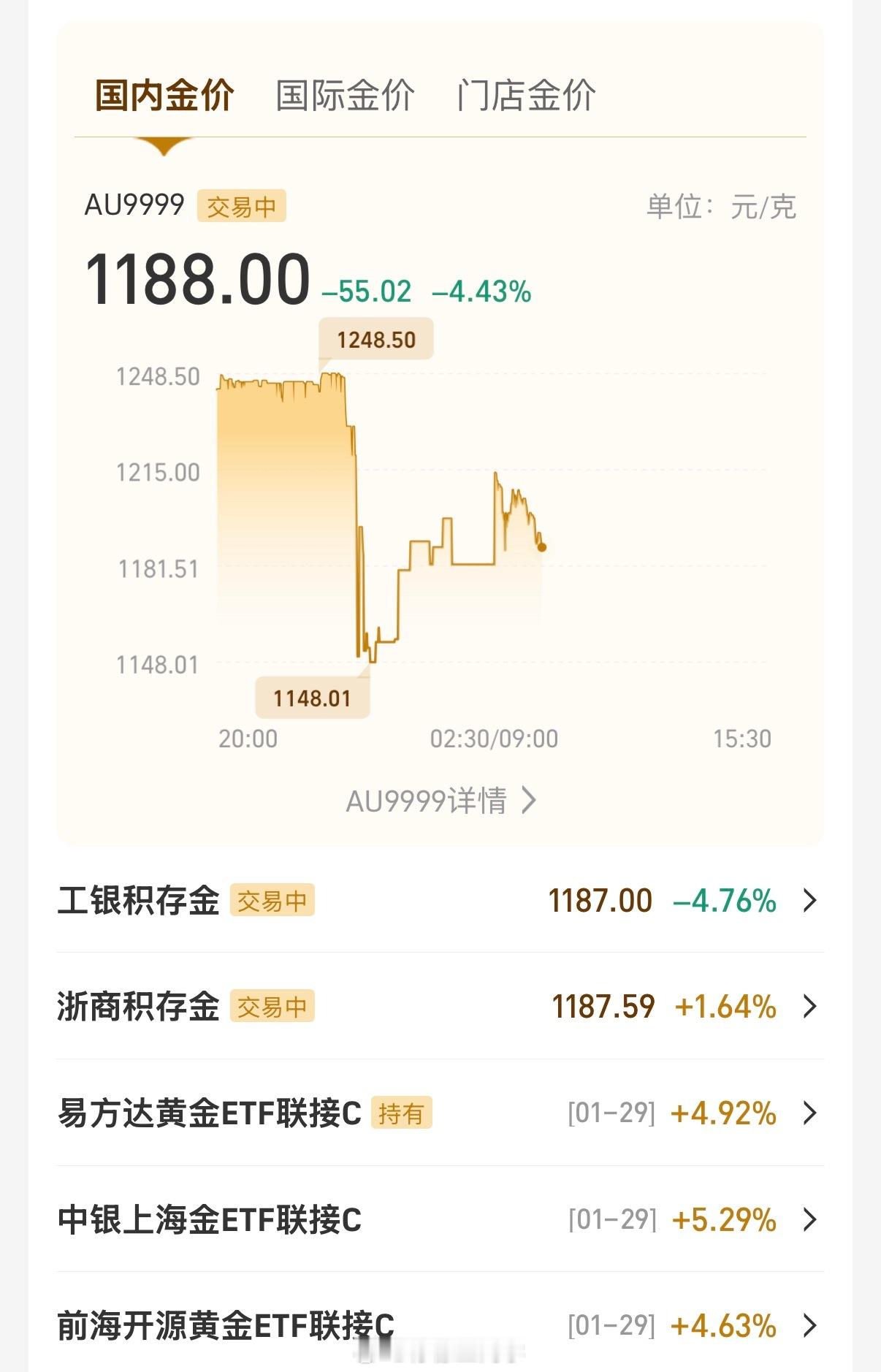 今日金价这才叫猛跌,之前都是小打小闹,不过猛跌后又回暖一点我还是比较看好黄金的,
