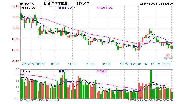 1月30日,截止午间收盘,创新药ETF摩根(560900)跌1.20%,报0.906元,成交额499.32万元。创新药ETF摩根(560900)重仓股方面,药明康德截止午盘跌1.84%,恒瑞医药涨0.29%,华东医药跌1.49%,复星医药跌1.59%,科伦药业跌0.41%,百济神州跌1.88%,长春高新跌2.17%,康龙化成跌1.52%,泰格医药涨7.28%,艾力斯跌2.71%。