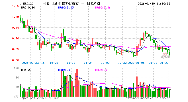 科创创新药ETF汇添富(589120)跌1.32%,半日成交额2464.41万元