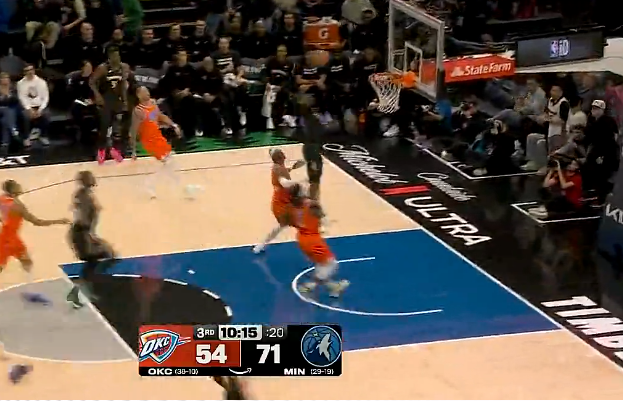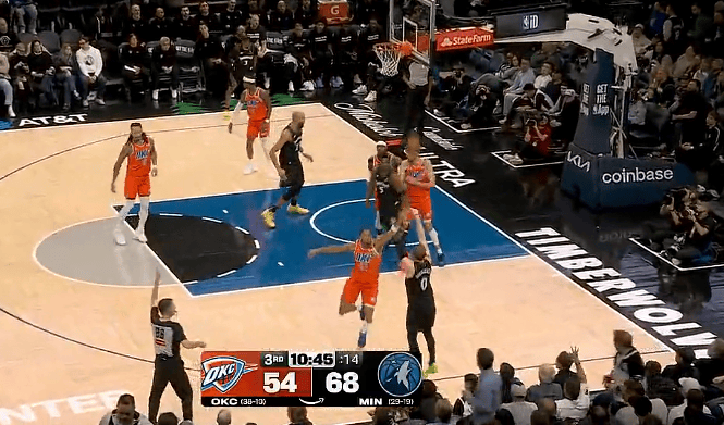虎扑01月30日讯NBA常规赛,雷霆对阵森林狼的比赛正在进行中。