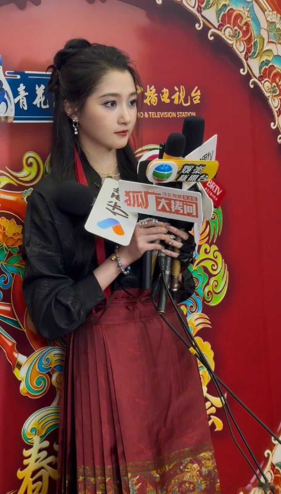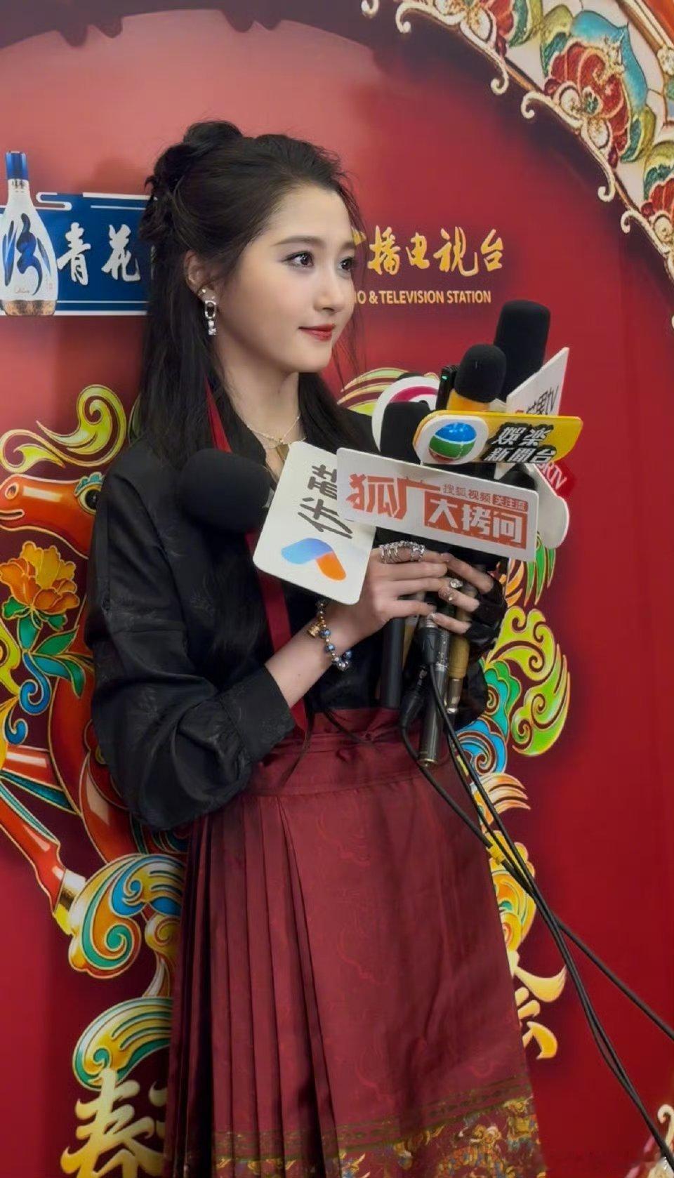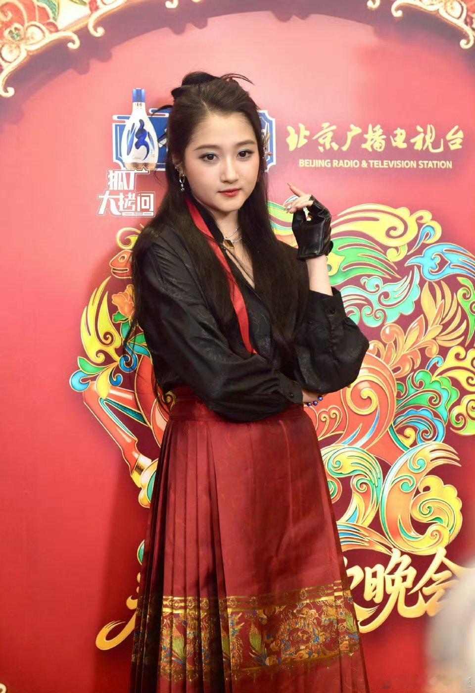 关晓彤北京台春晚造型来啦~哇,红色的马面裙啊!
