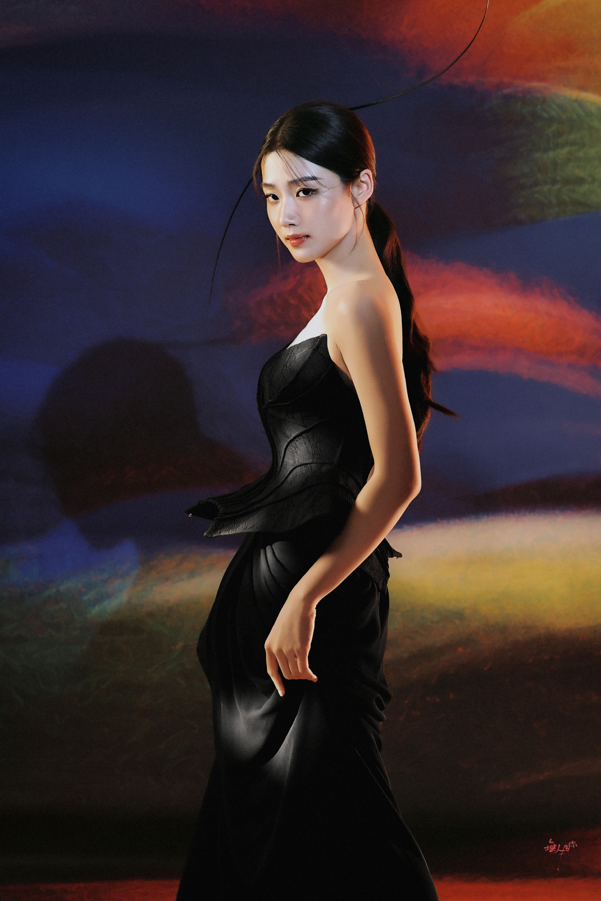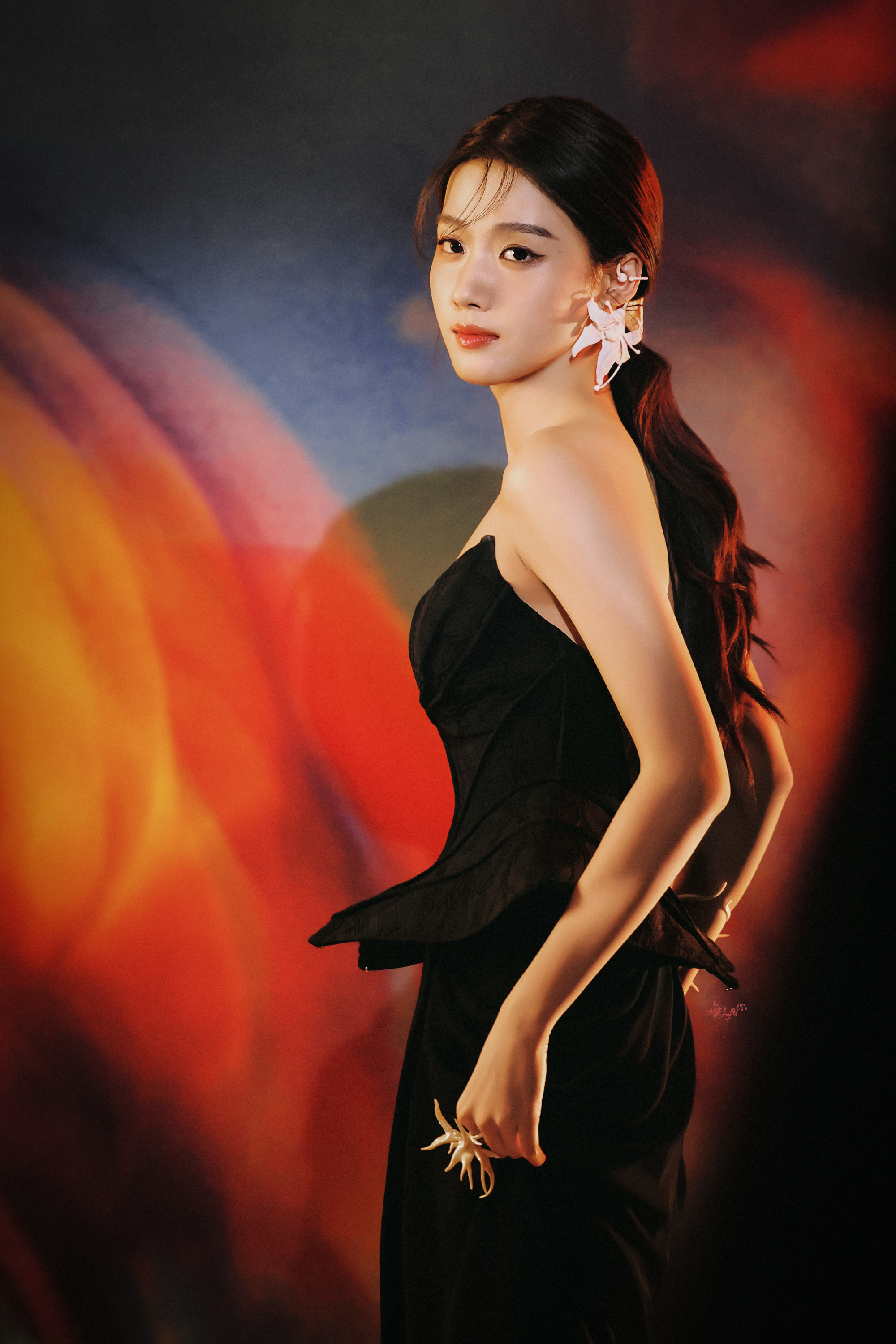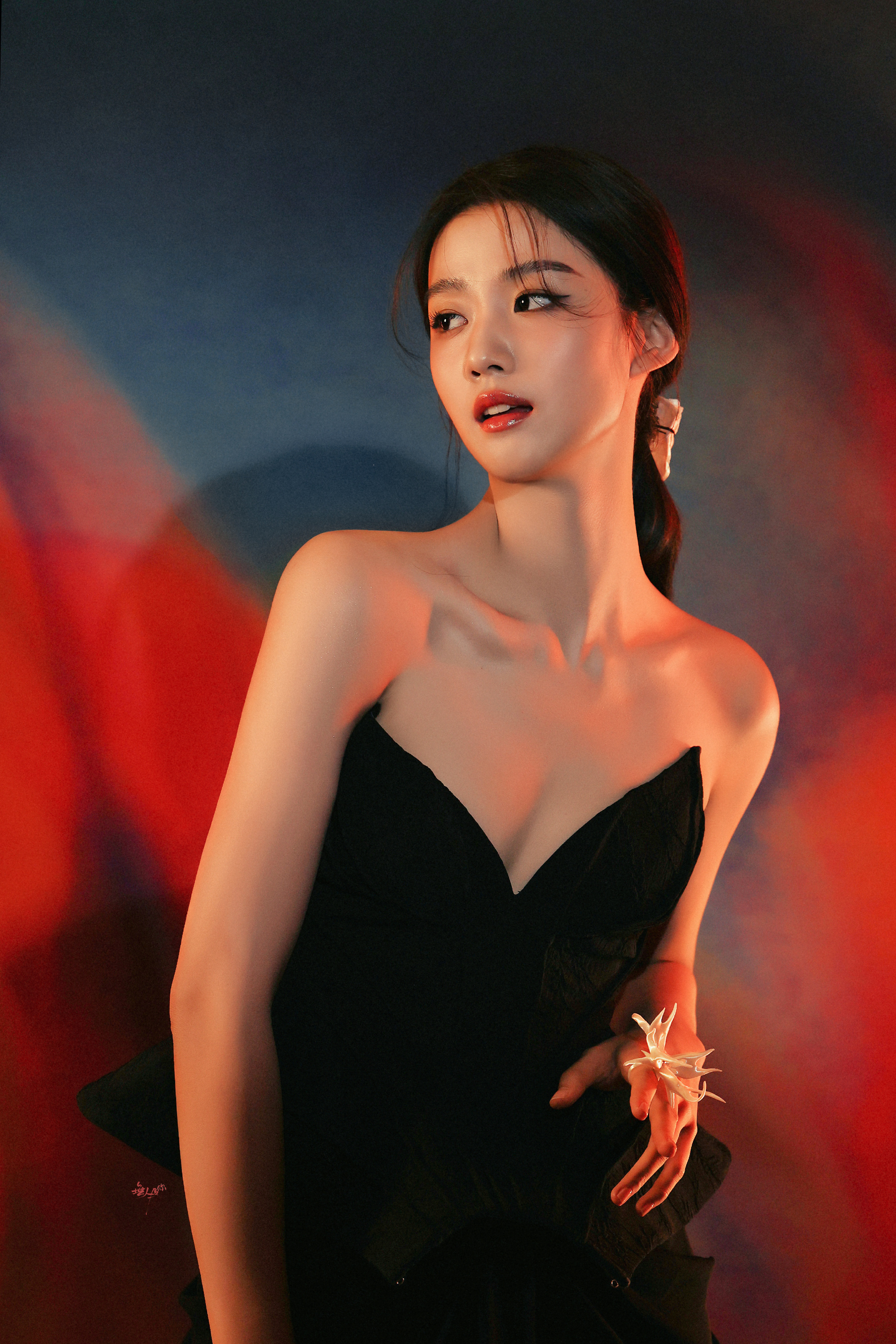 卢昱晓工作室审美,一身抹胸黑裙优雅魅力。卢昱晓