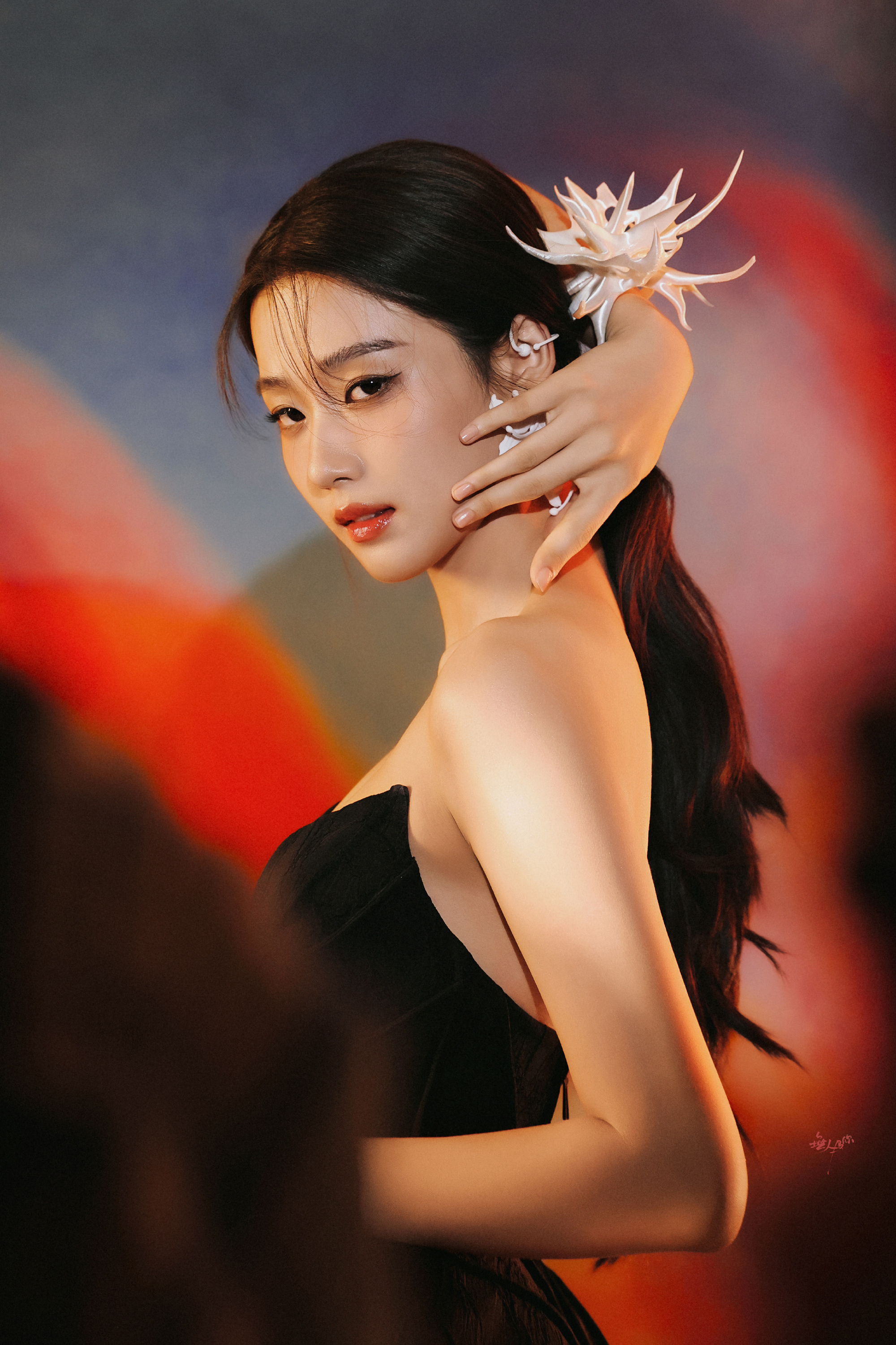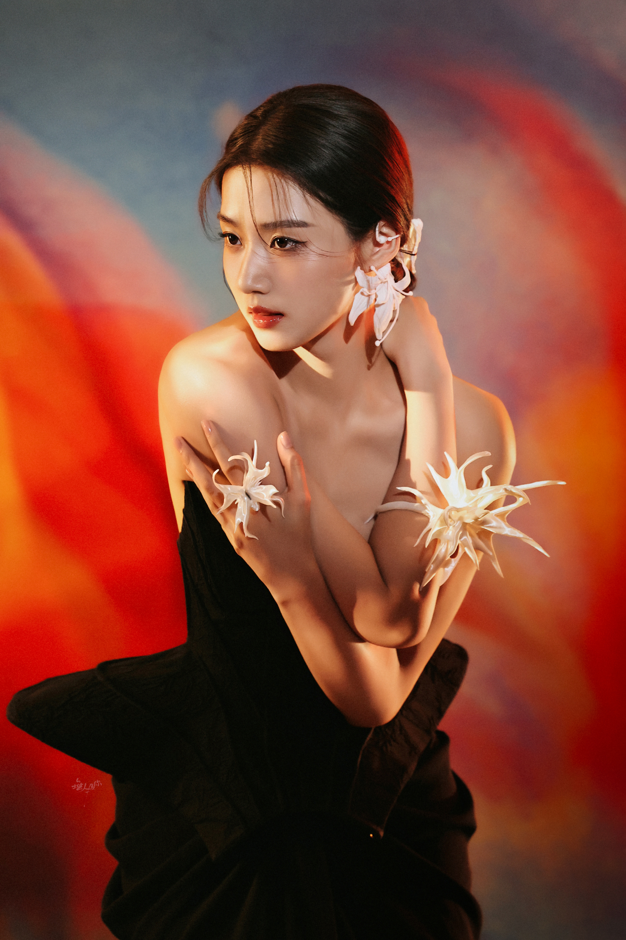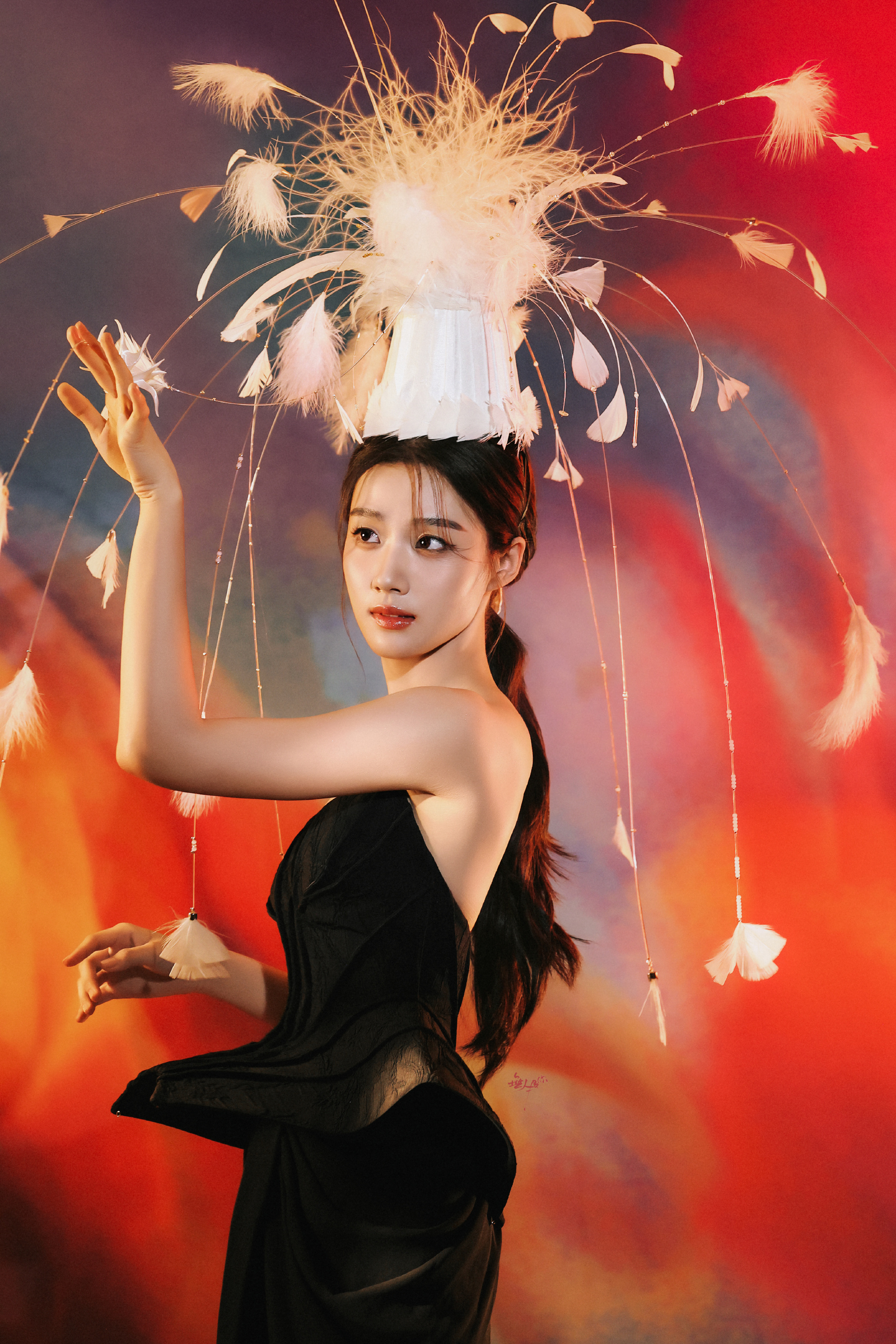 卢昱晓工作室审美,一身抹胸黑裙优雅魅力。卢昱晓