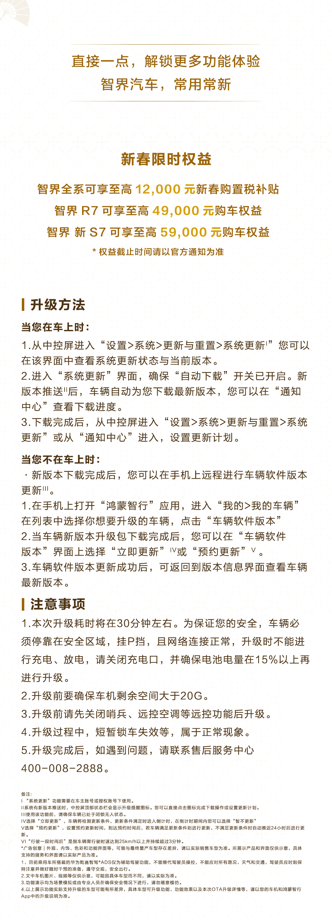 【智界汽车全系OTA推送升级:刘亦菲专属泊车语音包上线,多项首发功能落地】1 月 30 日消息,1 月 30 日,智界汽车正式宣布面向全系车型推送“OTA 开门红”版本升级。本次更新聚焦用户高频使用场景,全面覆盖智驾、智趣、安全三大核心维度,包含新增三点式掉头、3D 车模改装、增强型自动紧急转向辅助(eAES)以及刘亦菲专属泊车语音包在内的 30 余项功能。