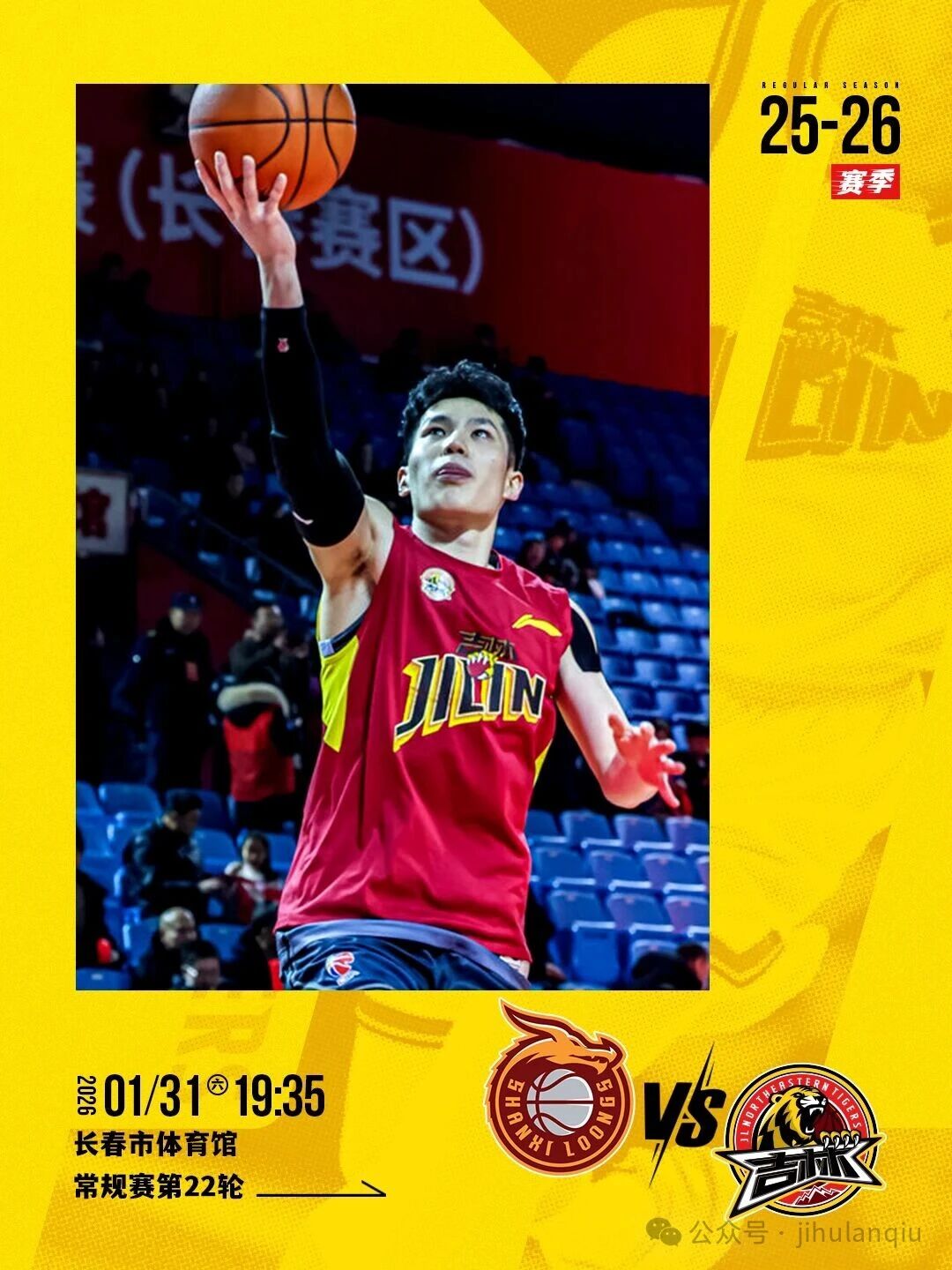 赛前据吉林男篮发文,1月31日,2025-2026赛季CBA常规赛第22轮,吉林长白山恩都里将在主场迎战山西汾酒!