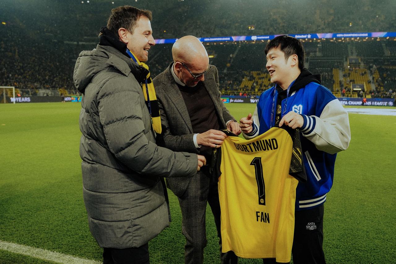樊振东交到了很多新朋友,还收到了多特蒙德赠送的定制印号球衣!
