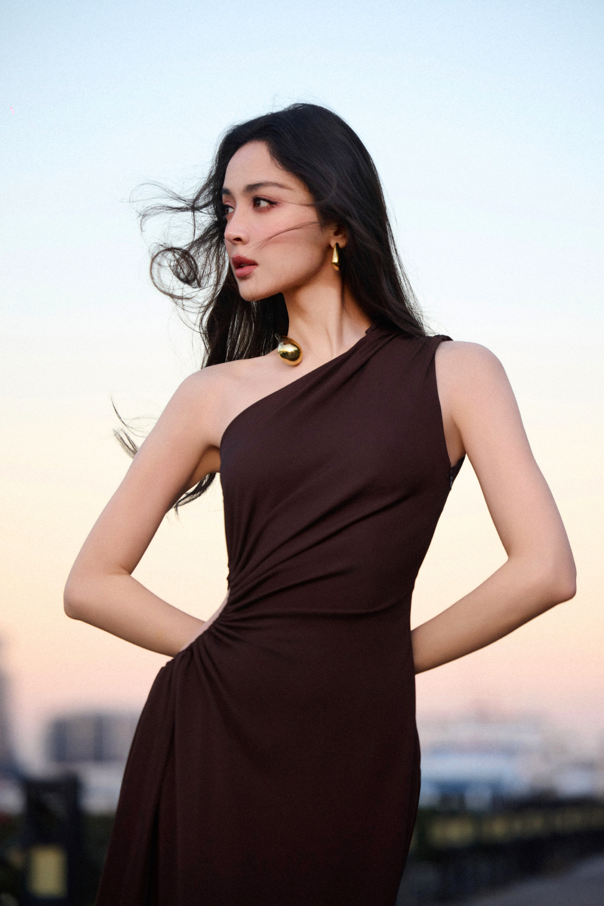 古力娜扎City Walk,朱唇裙装的冷酷姿态。娜扎
