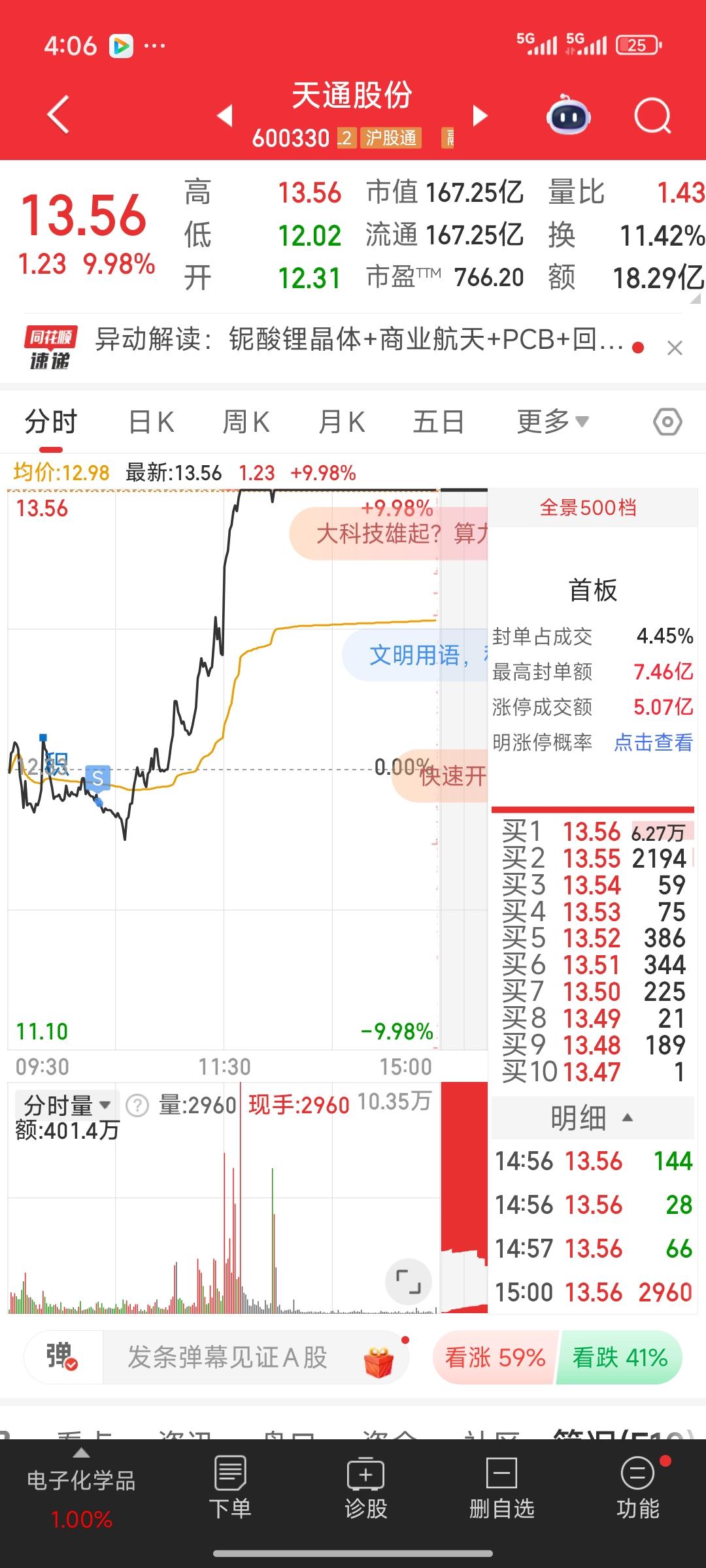 收盘了,收盘了!对天通股份来说,今日可谓喜忧参半。好消息是,尾盘成功涨停,这符合我的预期。此前,它连续受大盘拖累,连收三根阴线,今日涨停,或许预示着一轮上涨趋势即将开启。 坏消息是,我看到大盘似要破位,天通股份顺势下杀时,我抛售了部分股票,倒在了黎明前,实在可惜。由此可见,买了股票后时刻紧盯市场,弊端明显,很容易受分时走势和市场情绪的左右。何时才能真正做到买定离手呢? 事实上,天通股份近期利好消息不少,只是受大盘影响,一直未能发酵拉升。我认为,今日的涨停意味着新的上涨行情即将启动,短期内股价有望达到20。 兄弟姐妹们,你们坚守住了吗?是否被K线、分时线走势以及大盘走势影响,打乱了持股策略呢?