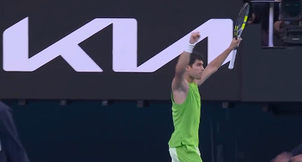 虎扑01月30日讯澳网男单半决赛,头号种子阿尔卡拉斯在第三盘出现抽筋情况下经过5小时鏖战,3-2淘汰去年亚军兹维列夫,生涯首次打进澳网男单决赛。
