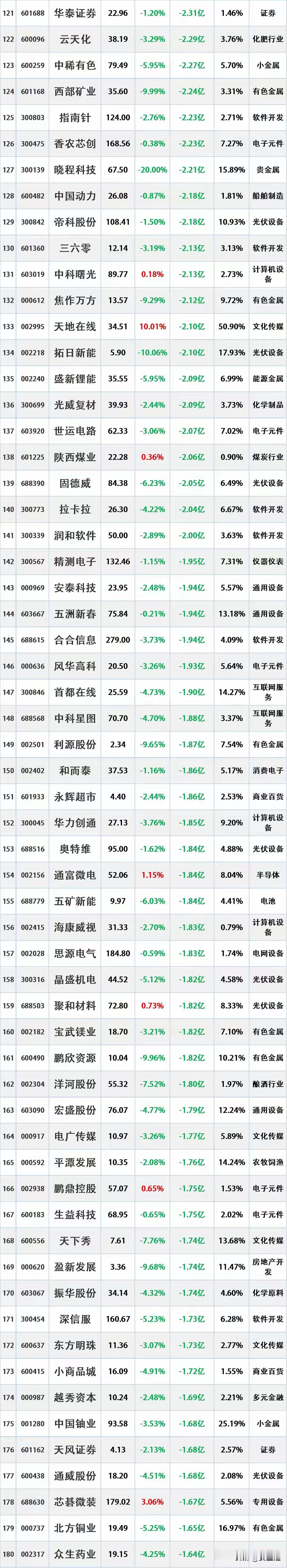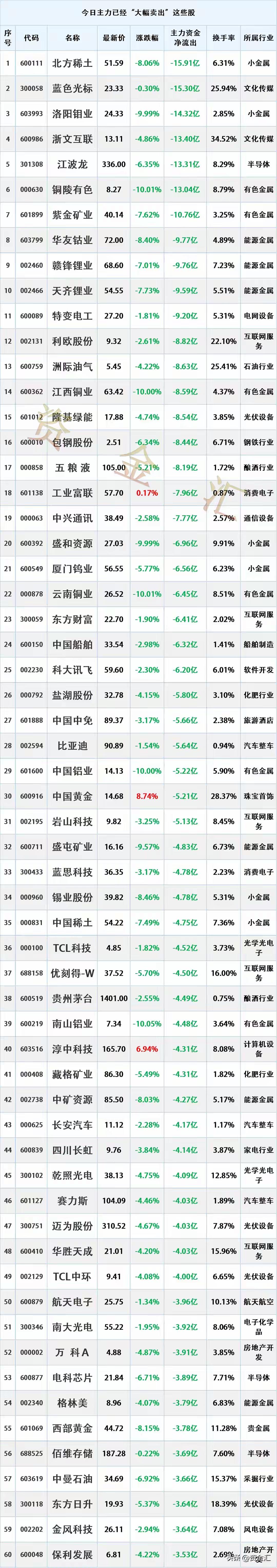资金流入流出TOP50,揭秘主力资金流向!"主力资金动向速览:科技、锂电、黄