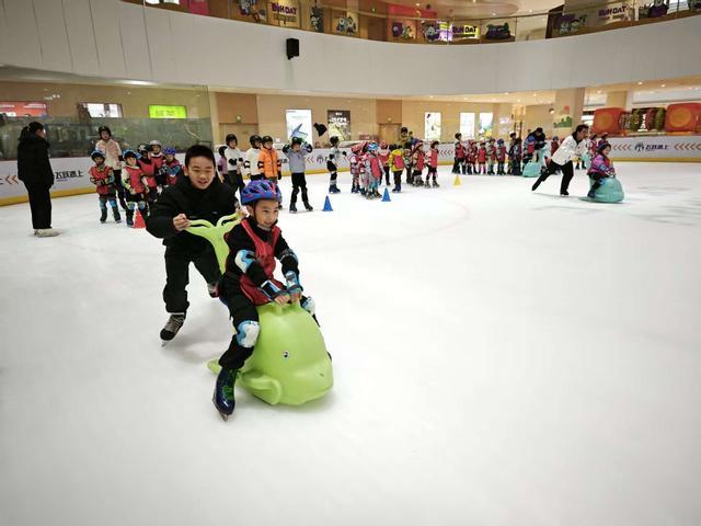 1月28日至29日,活动转场至昆明瑞鼎城飞跃冰上运动中心,开启滑冰体验篇章。教练团队依旧从基础抓起,细致讲解冰鞋与护具的穿戴要点,耐心指导大家扶栏站立、踏步、重心移动等动作,还安排了冰上助手辅助滑行,帮助初学者快速建立信心。待大家熟悉基础动作后,“冰上接力赛”“冰上拔河”等低难度集体游戏轮番上演,现场欢呼声、呐喊声此起彼伏。“和小伙伴一起在冰上比赛太有意思了,大家一起努力的感觉特别棒!”参与游戏的小朋友们都笑着说。
