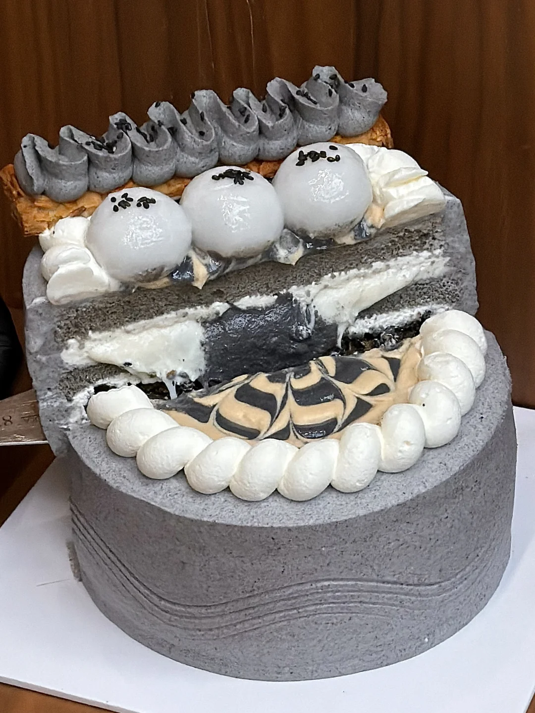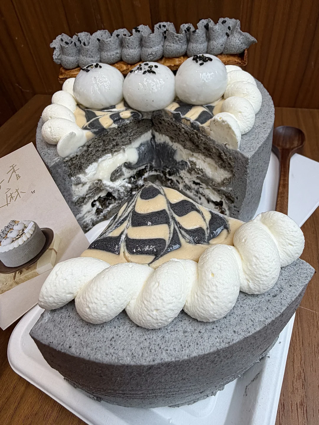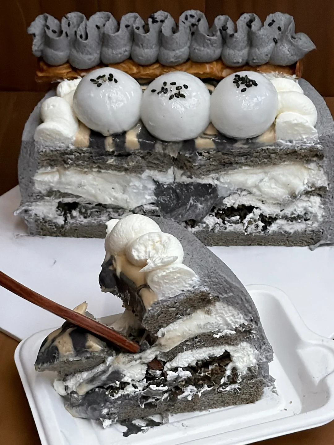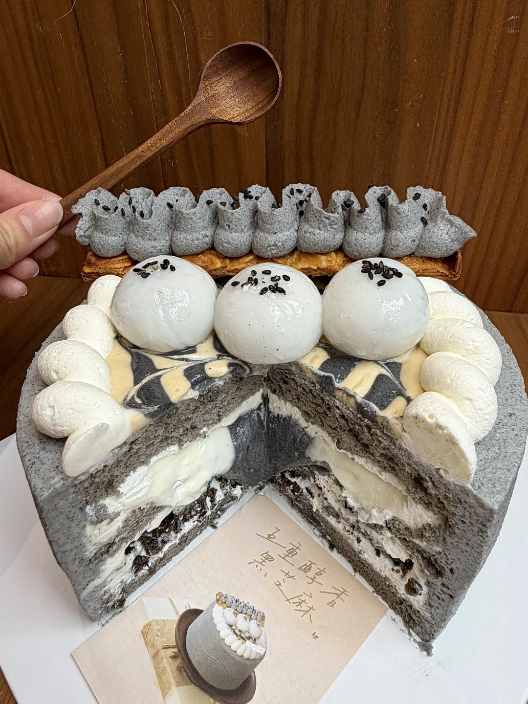 不愧是蛋糕中的仙品!!!!!!!!!! 最近被黑芝麻糕疯狂套头!好吃得我泪流满面😭 - ✔️五重醇香黑芝麻 黑芝麻奶油➕拉丝麻薯➕黑芝麻汤圆➕黑芝麻流心➕花生流心➕黑芝麻薄脆➕黑芝麻胚! 黑芝麻脑袋都给我闭眼冲!!闻起来就是浓郁黑芝麻香~一口下去满满糯叽叽拉丝麻薯、黑芝麻薄脆和黑芝麻流心!入口完全不甜腻!顶上还有软软糯糯黑芝麻汤圆!口感层次嘎嘎丰富🤤
