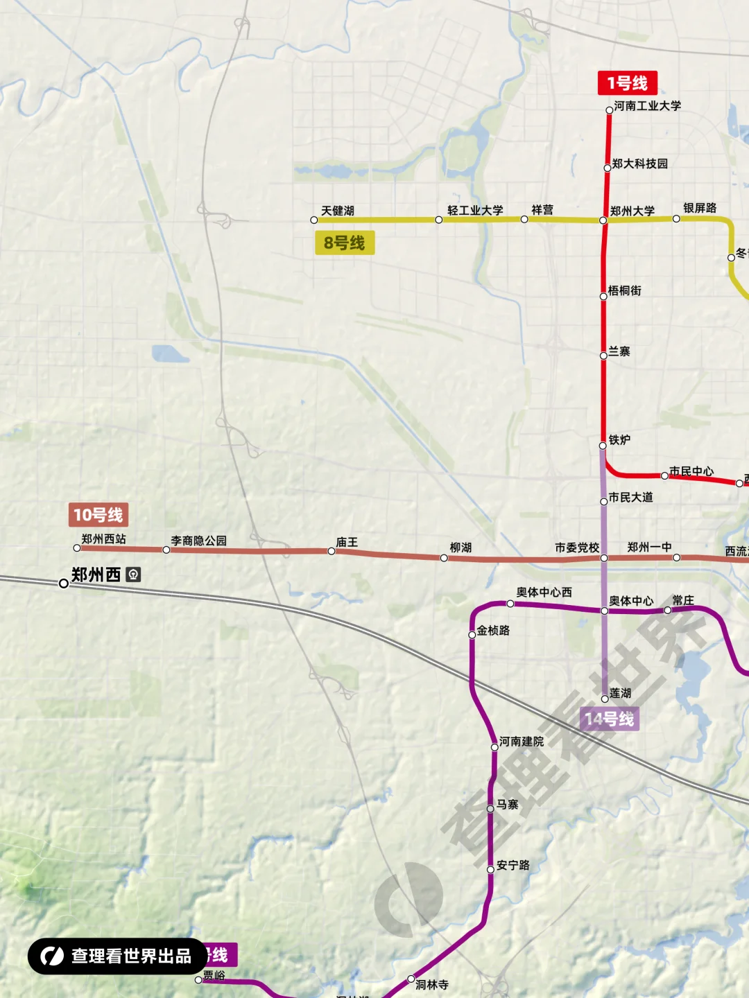 图片为郑州市高清轨道交通地图全图,截至 2026 年 1 月,郑州地铁已开通13 条线路,线网形成 “米字 + 环线” 格局,在建项目收尾,四期规划以既有线路延伸为主,稳步加密主城与外围枢纽衔接。运营总里程约383 公里,全国轨道交通运营里程位列第 11 位,位居西安之后、前十门槛之外。 ★原创地图内容谢绝转载★