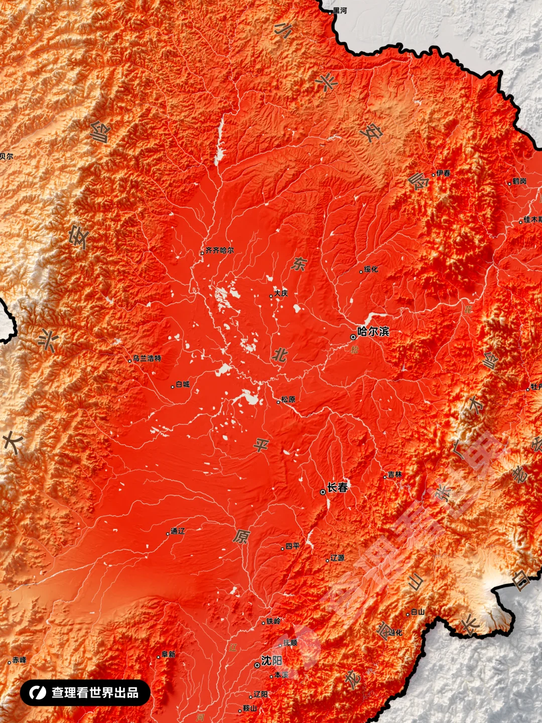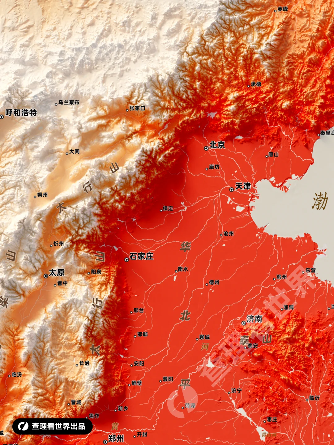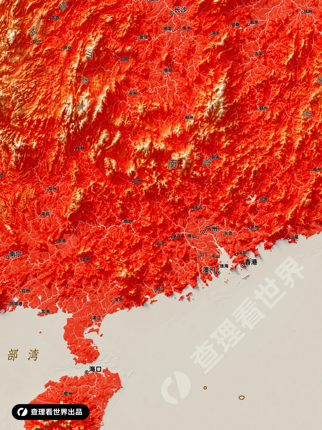 这张风格独特的中国地形图,用伪 3D 立体渲染和色彩分层技术,把中国大地的 “骨骼” 和 “血脉” 直观呈现:东南大片炽热的红橙,不仅是低缓平原的地貌色,更象征着人口稠密、经济奔腾的活力核心;而西部冷峻的银灰与褐白,则是青藏高原、戈壁荒漠的高海拔本色,勾勒出世界屋脊的雄浑与苍凉。 它不仅清晰展现了西高东低的三级阶梯地势,更暗藏 “胡焕庸线” 的人文地理规律,让你在视觉冲击中,瞬间读懂中国地貌与文明的共生关系。 ★原创内容谢绝转载★