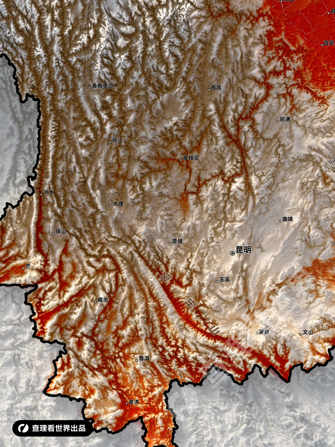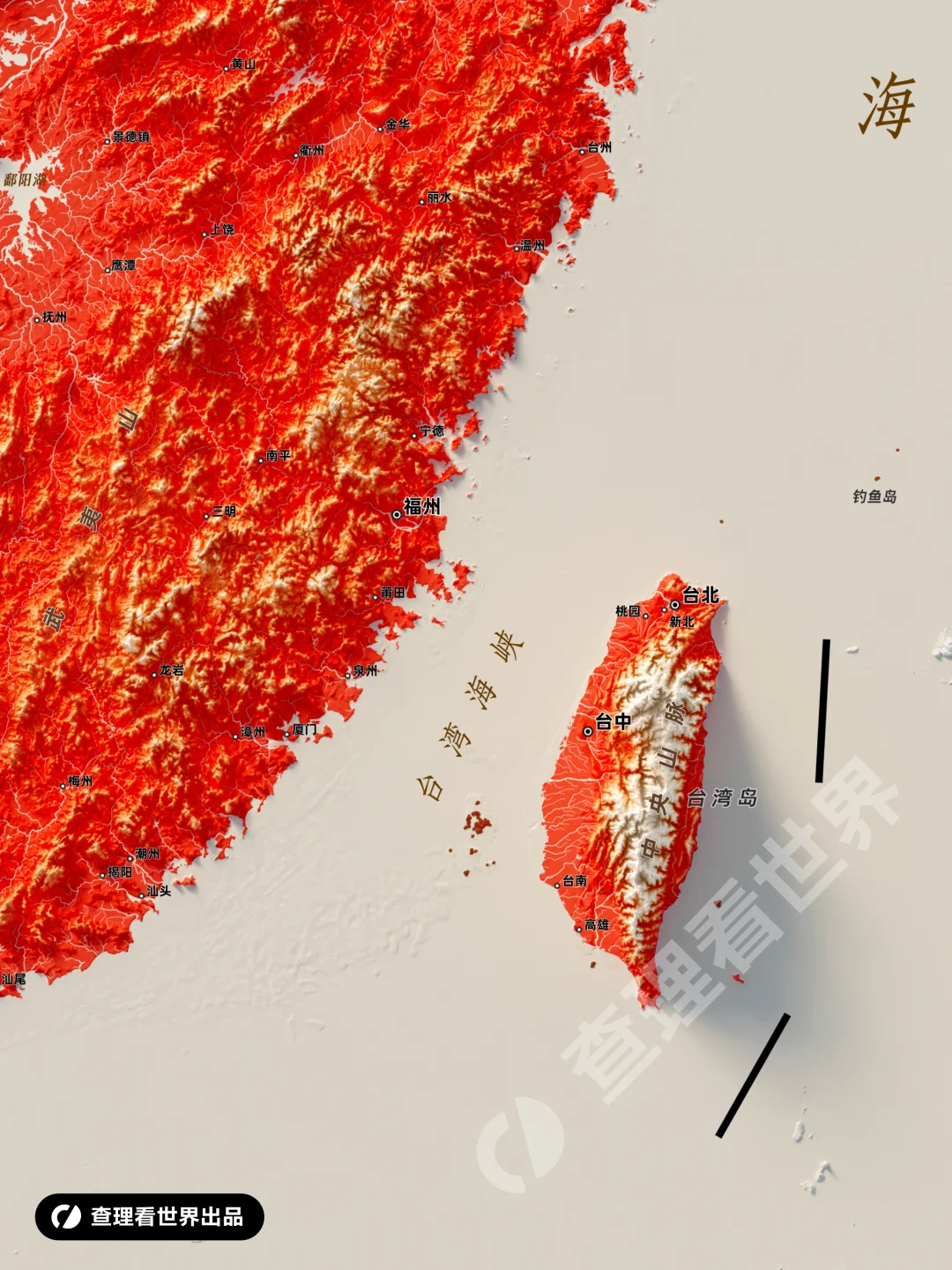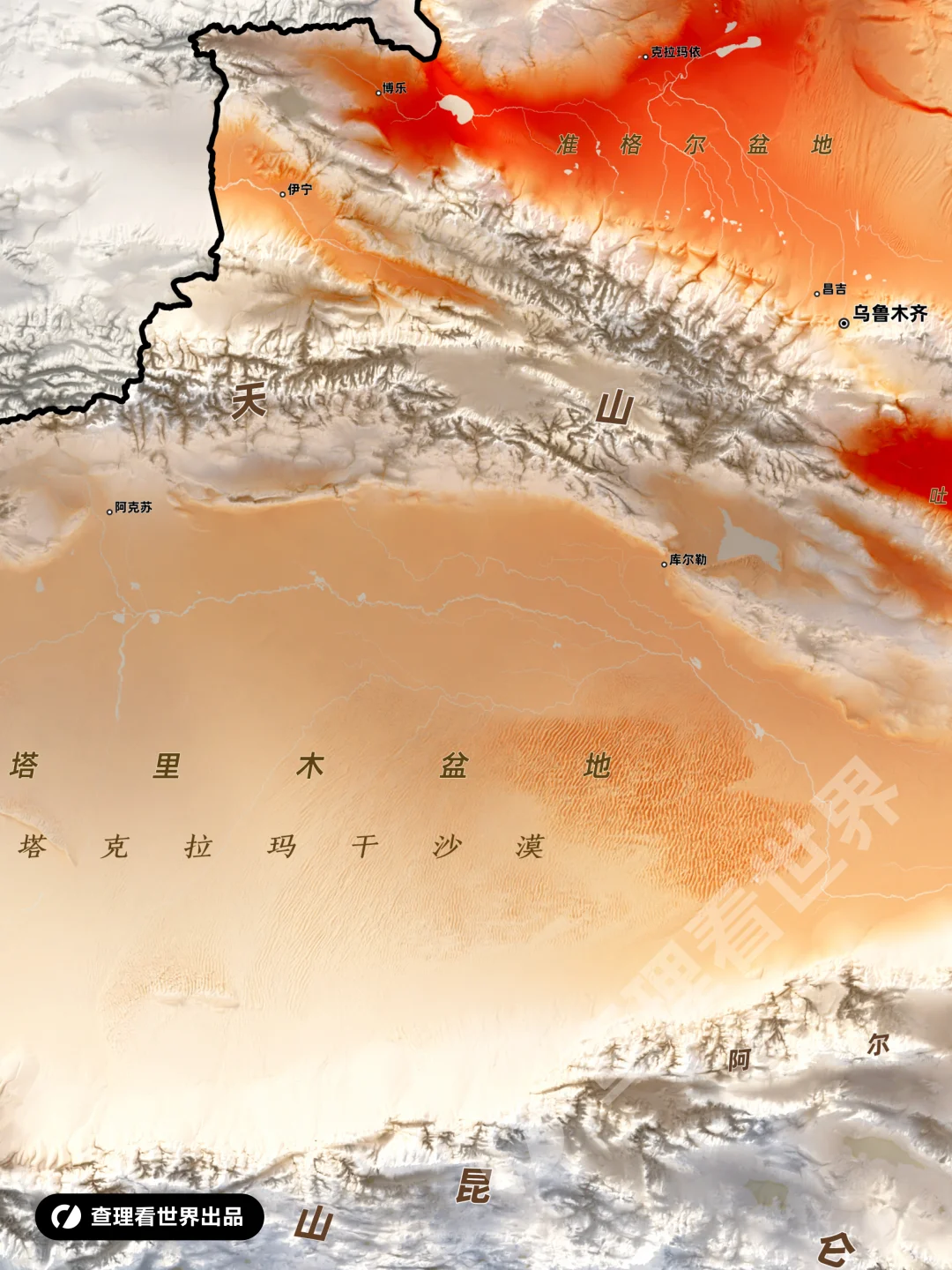 这张风格独特的中国地形图,用伪 3D 立体渲染和色彩分层技术,把中国大地的 “骨骼” 和 “血脉” 直观呈现:东南大片炽热的红橙,不仅是低缓平原的地貌色,更象征着人口稠密、经济奔腾的活力核心;而西部冷峻的银灰与褐白,则是青藏高原、戈壁荒漠的高海拔本色,勾勒出世界屋脊的雄浑与苍凉。 它不仅清晰展现了西高东低的三级阶梯地势,更暗藏 “胡焕庸线” 的人文地理规律,让你在视觉冲击中,瞬间读懂中国地貌与文明的共生关系。 ★原创内容谢绝转载★