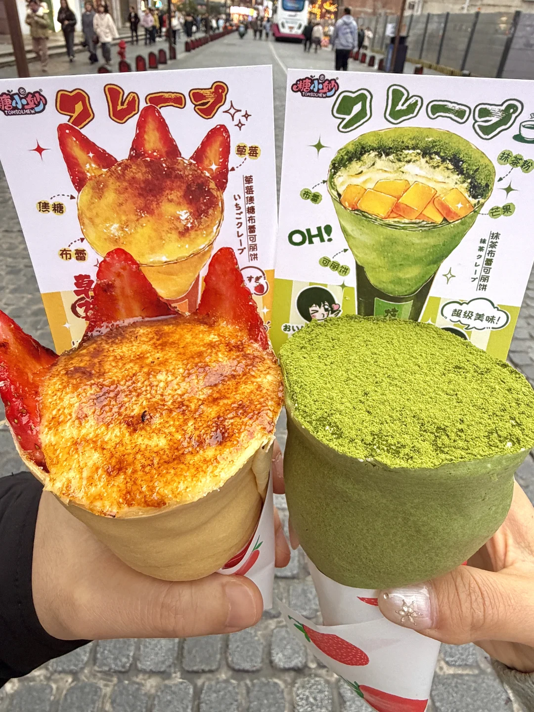 感谢大表哥!!确实好好吃啊😭烤布蕾可丽饼!就在悦方负一楼,草莓焦糖布蕾可丽饼、抹茶布蕾可丽饼……每一个都好漂亮好好吃啊啊一整个爱住(糖小妙)