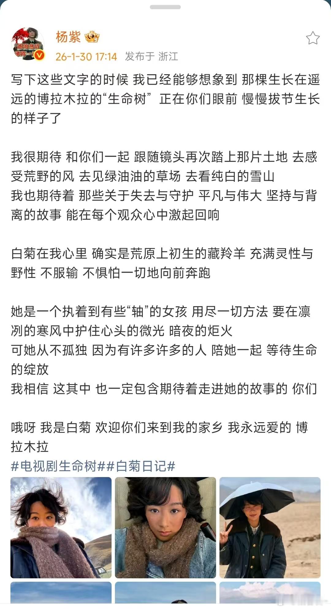 杨紫生命树开播长文杨紫说白菊是有些轴的女孩 杨紫说白菊是有些轴的女孩