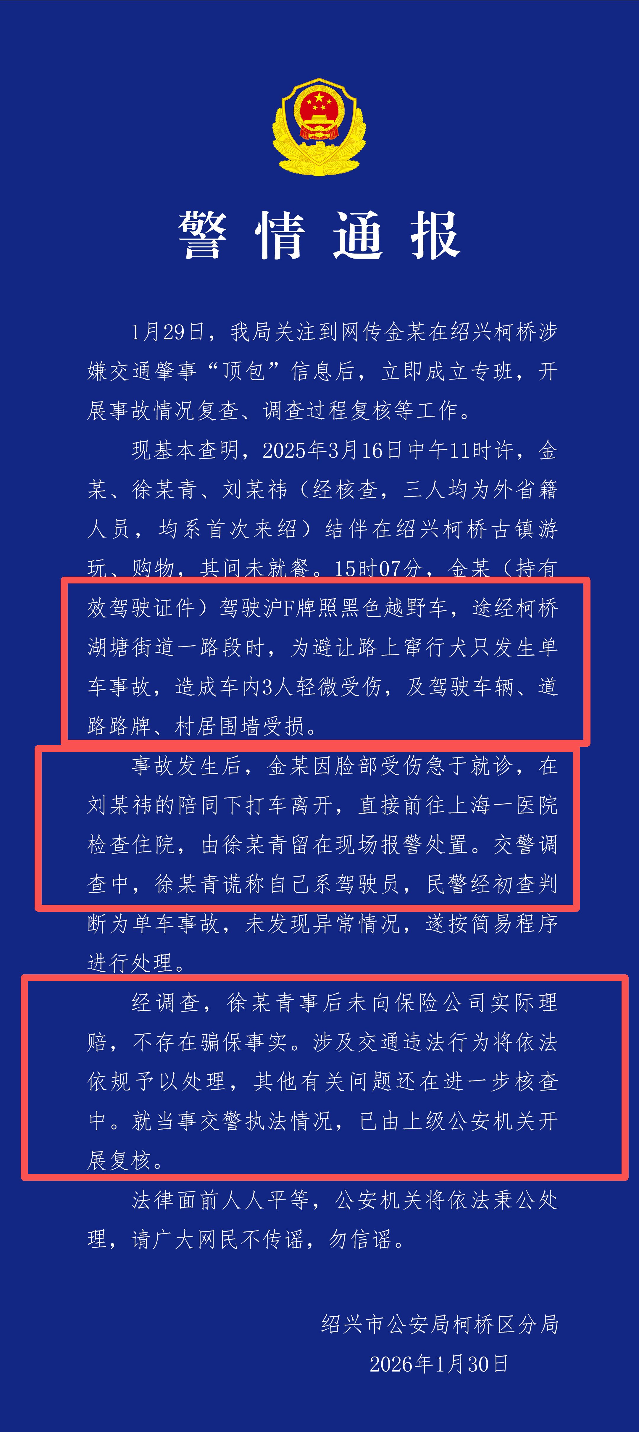 终于真相大白!金晨车祸事件警方通报来了,这反转你打几分?等了一天,警方通报终