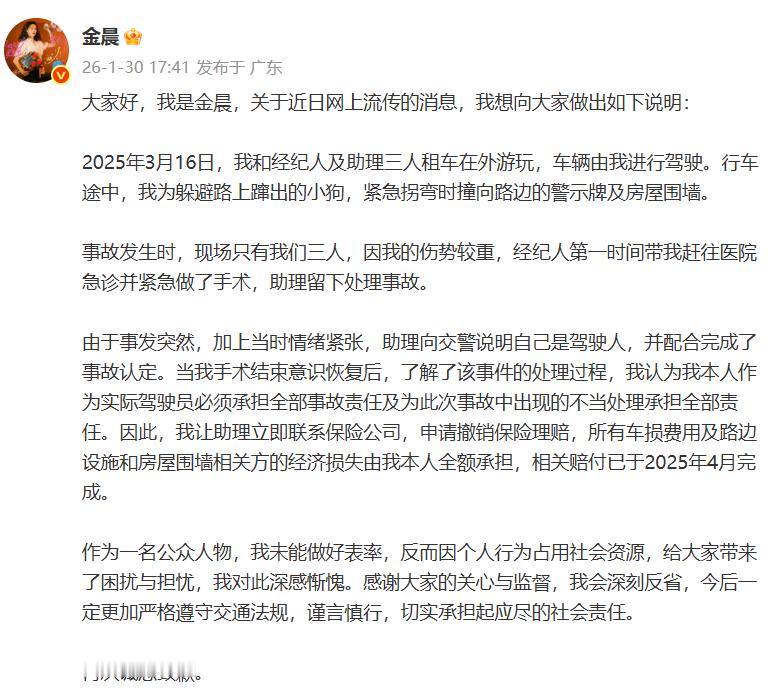 原来我们真的冤枉金晨了!刚刚警方通报了她的情况,金晨也发长文说出了事情的详情,看