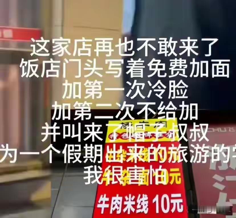 一次加面纠纷,引发出经营者、顾客以及执法者三方的法律困惑。 在四川乐山某县的一个面馆里,明明写着免费加面,却在顾客第二次加面时,面馆老板却让二次加面的顾客交三块钱。这下引起了顾客的不满,双方发生了争执。老板报警,警察到现场后的一番处理也广受大家的诟病。 视频里顾客邢先生拿着手机跟民警解释,说店铺招牌写得不明不白,但民警很快打断,还觉得他就是为了那3块钱斤斤计较,“你别录我,三块钱都不愿出吗?你要实在还想吃,我给你垫三块,别吵了”,还说这都不够他来回的油钱。坐在现场的本地客人也不帮理,甚至有人喊着直接拿十块钱把人赶走,觉得邢先生就是矫情。 根据视频中老板、顾客和警察的表现和言语,我想谈一下自己的观点:面馆门前那么大的招牌上写的非常清楚,各种米线和面都是10元,并且特别注明了免费加米线、加面。在顾客和老板发生争执时,免费加面的次数成了争执焦点,老板说只加一次,顾客说你没有标明只加一次,那就是可以加多次。老板的一句回怼更让人们无语:我没说加一次,也没说加两次呀。从法律上来讲,你老板向外展示的标牌,就是你老板制定的格式条款,如果格式条款有多种解释,又没有标注清楚,发生纠纷时就会不利于格式条款的制定者。在此事件中,既然老板标明了可以免费加面,又没有标明加面次数,那就可以认为在顾客是一个人吃面、又没有浪费的情况下,可以多次加面。这个顾客不是矫情,而是用法律在保护自己的权益。 再说一下出警的警察,我不认为警察是在故意偏袒本地的老板,但警察说出的话句句都在偏袒本地老板。无论什么情况下,作为警察都应该站在中立的角度依法来处理突发事件。警察说的话看起来很仗义,可以自己出钱让顾客加面,但明显是站错了位置。警察出警是让你依法来处理突发事件,不是让你来扶贫的。维护社会秩序,维护法律的尊严是不能讨价还价的,说什么就三块钱,还不够我出警一次的油费。说这话真的有失一名警察的身份,如果警察出警都要考虑成本,那中国的社会早就乱套了。 我们的社会还是存在着这样的问题的,就是我制定的格式条款,解释权就在我这里。例如:服务行业的各种活动、优惠政策等等。再往深处说,我们的法律条文,也可以认为是国家制定的格式条款,代表国家的某些执法部门或者个人,就认为法律的解释权在我们的部门或者是个人。我们的法律也有规定,就是执法者和被执法者发生纠纷时,法律条文有多种解释时,要向着有利于被执法者一方解释。例如:公民的某个行为,可能违法也可能不违法,那就只能按不违法来处理。就拿司机开车抽烟这个问题来说,法律没有明文规定开车禁止抽烟。但在法律条文的最后列举了多种开车中的违法行为后,又加了一个“等”违法行为。我们有些地方的交警就认为开车抽烟就在这个“等”违法行为中包括的。但很多司机师傅却不这么认为,司机认为开车抽烟并不影响驾驶。一旦发生这样的纠纷,对法律的解释就应该向着有利于司机一方。但在现实社会中,很难做出这样的解释,往往是司机被处罚而结束。 在我们法治社会的今天,这些问题也应该引起大家的关注!