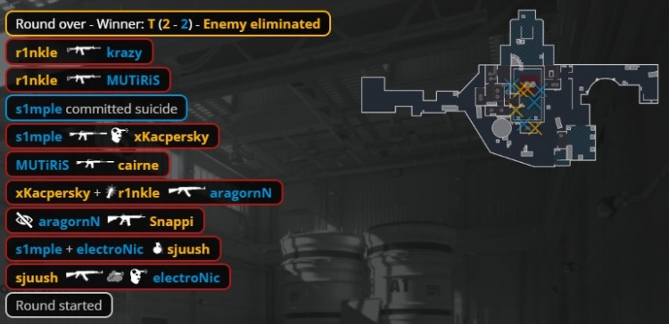 次回合NIP强起,r1nkle英雄鸟狙,BC冲A得手,电子哥与krazy各取双杀下包拿到第8分。随后NIP纯E送出第9分,卡巴斯基保住一把AK。