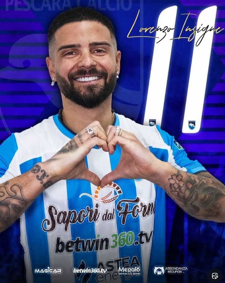 佩斯卡拉官方宣布34岁意大利前锋因西涅加盟,并发文欢迎他重回球队。