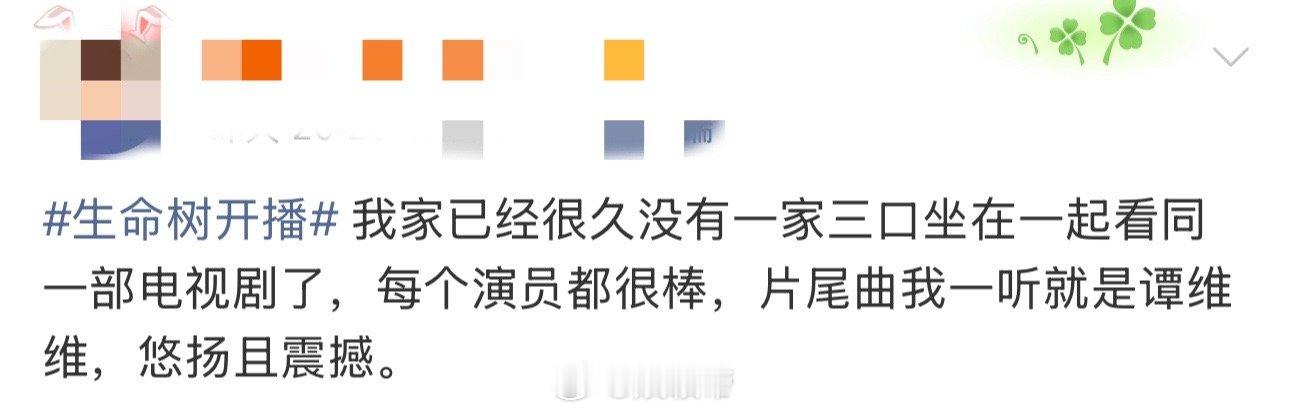 谭维维献唱生命树同名主题曲生命树 破防了!谭维维的嗓音就是为《生命树》而生的吧?那种空灵中的坚韧,力量里的温柔,每一句都像在讲述剧中人物的故事,适配度直接拉到百分之百!