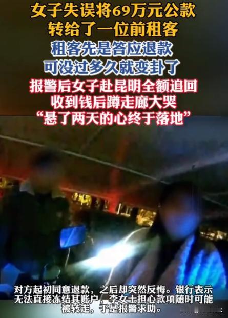 江苏苏州,一女子在转账操作时,她不小心输错账号,把69万公款转给了曾经的租客,女子好话说尽,希望租客退回这笔钱,可租客却翻脸不认人,非要派出所出面才肯退还,等民警联系租客,租客:你们管得着吗?不过民警有办法,最终让租客退了钱。 年底了,李女士是一家公司的人力专员,公司里一堆事都压着她,薪资核算、各种款项划转,每天从早到晚脚不沾地,手指在键盘上敲得噼里啪啦,就怕出差错。 1月29,当时要给合作方转69万货款,李女士连续加班,精神恍惚,输账号时,一个数字按错了,也没看,就直接点了确认转账,等页面跳出转账成功的提示,她仔细一瞧,收款人是曾经租过她房子的云南租客。 这69万是公司的公款,要是要不回来,不但李女士的工作保不住,估计还得背上这笔债务,想到这她慌了神,赶紧翻出通讯录,拨通了租客的电话。 租客接了电话,李女士把事情说了一遍,求租客把钱退回来,租客一开始答应,说马上就去操作,李女士不停地道谢。 可一会,租客的电话打来了,态度变得特别不好,说钱已经用了,退不了,李女士好言相劝,说是公司的钱,自己承担不了这责任,租客却耍无赖,说除非派出所找他,否则钱退不了。 李女士又联系银行,希望能冻结租客的账户,可银行的人告诉她,转账成功了,没办法直接冻结,李女士感觉天都要塌了。 无奈,李女士告诉了领导,然后就去附近的派出所报了案,民警了解后,联系了云南警方,协助管控租客的账户,防止钱被用掉。 民警也和租客联系上了,租客接到民警电话,说民警管不着他,直接挂了电话,民警继续打租客的电话,跟他解释这事的严重性,告诉他拒不归还公款违法,是要坐牢的。 租客开始还嘴硬,可在民警反复劝说下,态度逐渐软了,他承认是一时贪心,想占这钱,但又怕真有麻烦,民警趁热打铁,给他讲了好多类似的案子,还有拒不归还的后果。 经过沟通,租客同意退款,为了确保钱顺利转回,民警告诉李女士,最好亲去一趟云南,在当地警方见证下完成转账。 李女士立刻订了机票,第二天就赶到云南,在当地警方的安排下,和租客见了面,租客低着头把69万转回了公司账户。 根据民法典第985条规定,得利人没有法律根据取得不当利益的,受损失的人可以请求得利人返还取得的利益。 租客取得这69万,是因李女士操作失误,租客没有合法依据用这钱,这69万属不当得利,租客开始答应退款又反悔,还耍赖要派出所出面才退,明显不合理。 他明知没有合法依据占这钱,还试图占为己有,这已经违法了,当民警给他解释后果时,他还耍无赖,这是错上加错,他以为自己能逃避法律,可法律是不允许这种行为存在的。 现在电子支付这么普及,转账是越来越方便了,可转错账的风险也增加了。 有人觉得转错账是小事,大不了再转回来,实际上,有些人在面对转错账时,像这租客心存侥幸,想占为己有,他们没意识到,这种行为违法。 一旦被追究法律责任,后果还真很严重了,在转账时,一定核对好信息,避免因大意带来的麻烦,要是转错了账,也别慌,及时采取措施。 要是跟收款方沟通不顺利,对方拒绝归还转错的钱,根据民法典规定,收款人收到的这笔转错的钱属于不当得利,遭受财产损失的汇款人有权要求收款人返还。 要是遇到这情况,可以提起诉讼,要求收款方返还不当得利,起诉时,得保留转账记录截图、交易明细、短信通知、跟收款方的聊天记录或通话录音等。 转账时,可要仔细核对信息,要是真转错了,也别慌,按照以上说的来处理,都能得到妥善解决。 对此,大家都怎么看呢,一起来讨论一下吧!