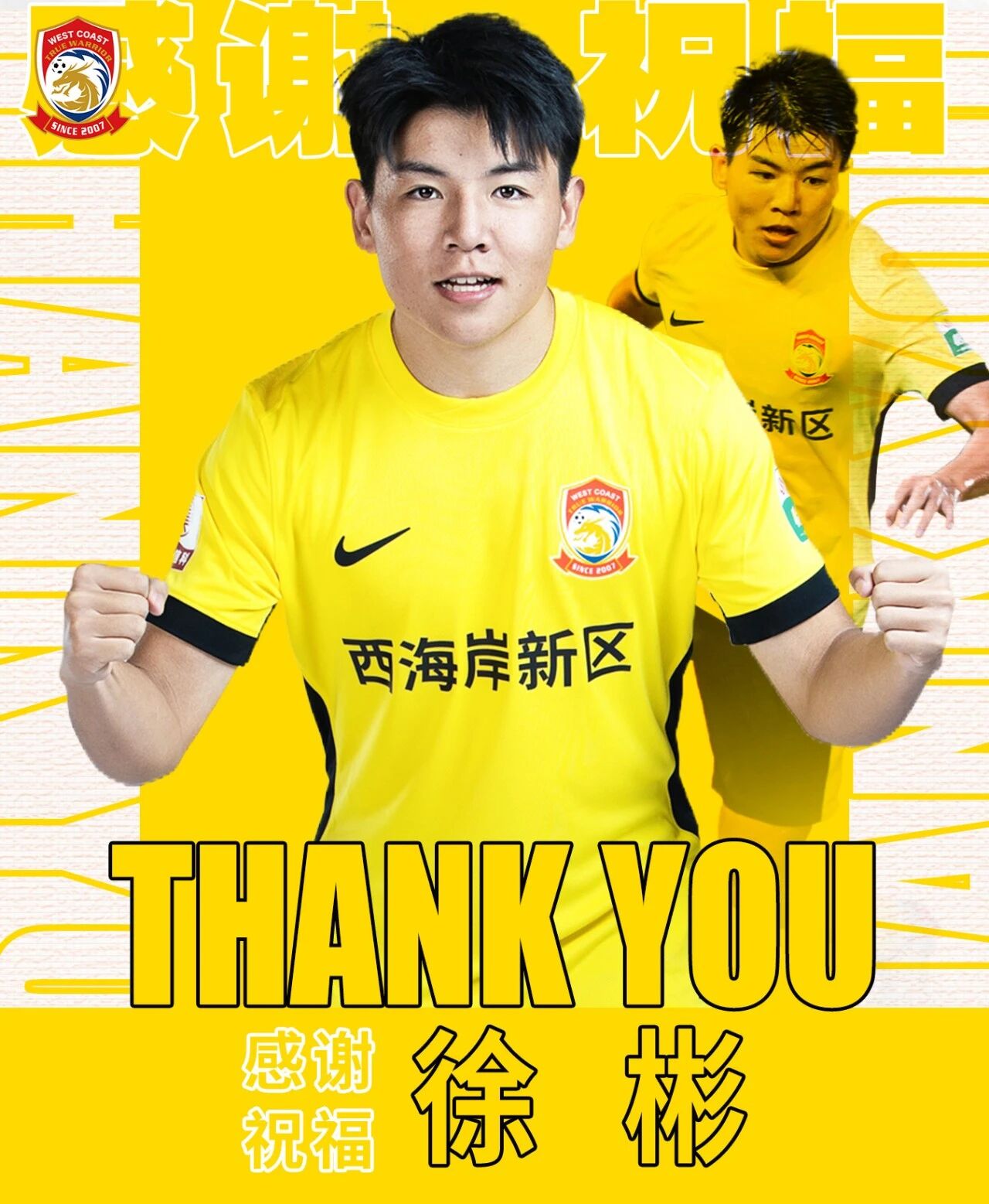 徐彬的成长与绽放,让俱乐部倍感欣慰。俱乐部由衷希望,未来能有更多优秀的年轻队员从西海岸的绿茵场出发,走向更广阔的职业舞台,奔赴更高远的足球征程。徐彬用一年时光,将青春汗水镌刻在西海岸的绿茵之上。衷心感谢徐彬为球队发展作出的贡献,祝愿他在海外征程中披荆斩棘、稳步成长,在更高舞台上绽放光芒。