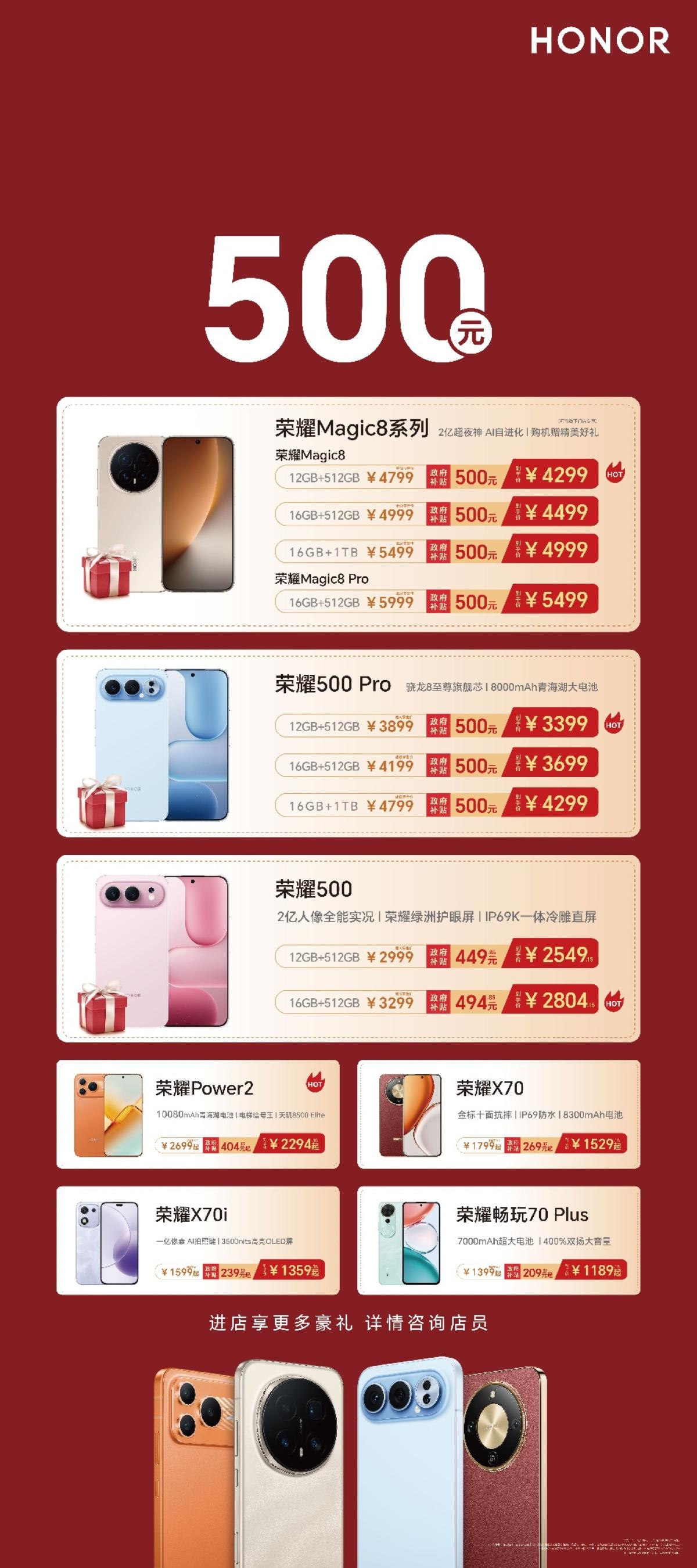 即日起,消费者前往全国荣耀线下授权体验店,即可享受国补直降、领取专属赠礼、参与打卡抽奖。具体活动详情及门店信息,请关注荣耀官方社交媒体公告或咨询当地门店。