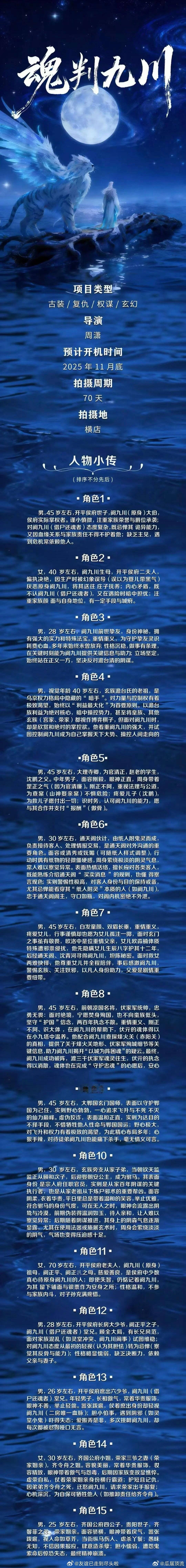 🍉:田嘉瑞《魂判九川》,这部剧疑似改编自《九姑娘她一身反骨人还狂》,大女主性转要拍成大男主爽剧???男主名字阆九川与原著女主名一致,人设背景也一模一样;主要配角宫七、酆涯也照搬原著小说设定。有点搞不懂你们内娱了,为什么要做这种费力不讨好的事,想拍大男主为什么不去演男频IP?