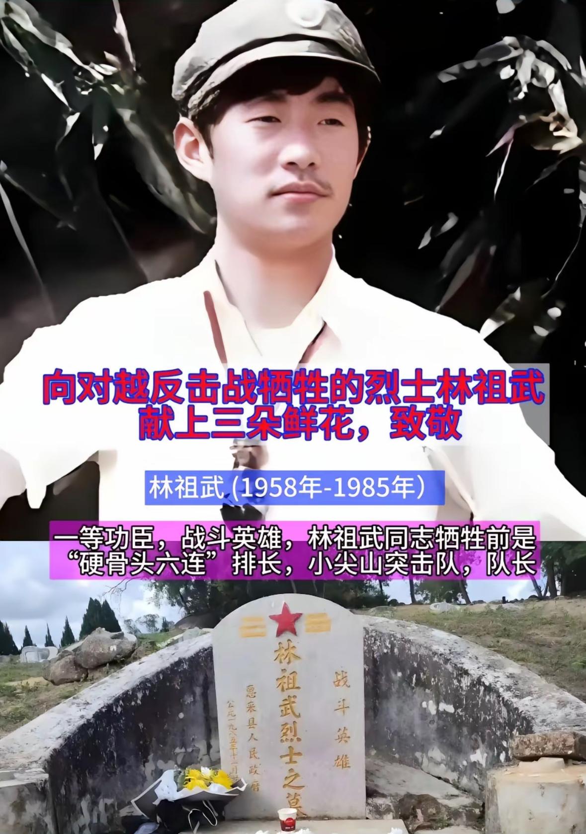 粉身碎骨浑不怕,血洒南疆惊浩宇。他名叫林祖武,老山突击队长,本该订好结婚日子的他,却害怕连累未婚妻拒绝完婚,一句等我回来我就娶你,成了永远无法兑现的诺言… 林祖武(广东惠来县东陇镇钓石村人),1979年参加自卫反击战,因作战勇敢荣立三等功,凯旋归来后被保送到南京步校深造。毕业后分配到“硬骨头六连”担任排长。1984年在开赴老山前线之前回家探亲,未婚妻提出与他结婚被婉拒,不连累女友,建议女友等他战后回来完婚。 1985年2月,林祖武还坚守在防御阵地上,他得知要拔点战斗这一消息后,三次给连首长打电话,摆出五六条理由说:“我是一名老兵,上过战场,家里兄弟多,我要当突击队长”。有的战友半开玩笑地说:“你的心上人还在家里等着你呢…”林祖武笑了笑说:“生命和爱情对我来说,都很宝贵,但祖国需要我做出牺牲时,我林祖武绝不含糊!” 1985年3月8日凌晨4点,在攻打小尖山的战斗中,担任突击队长,率16名勇士分三路向敌发起猛烈突击,此次战斗中,突击队长林祖武冲锋在前,身陷敌群,在战斗中两次负伤,他左腿及腹部中弹,卫生员要为他包扎,被他拒绝,仍一边指挥一边带头冒着枪林弹雨强行攻上封顶时16名突击队员已有多人伤亡,支援部队攻了几次仍未达到顶峰。7点30分,敌人一个班兵力反扑时,林祖武把敌人放到30米处开打,最终消灭了山上的敌人。取得了初步的胜利,但喘息未定,越军的炮弹就覆盖了过来,林祖武安排秦志荣、把伤员挪到隐蔽处躲炮,自己却与三班秦德本留在外面监视敌军。 随后,敌军又开始第二轮反扑,秦德本与他歼灭了7名敌人后被手雷炸中头部,壮烈牺牲!这时他右腿也负伤,无法站立。11名敌人在炮火掩护下反扑过来。林祖武投弹打倒7人,仍有4名敌人包围过来。他们见林祖武背着861ZH机,认为是带队军官,上来要抓他。此时林祖武已三处负伤,难以支撑,失去攻击能力。他宁死不当俘虏,毅然拉响手榴弹与4名敌人同归于尽,年仅27岁。随着我军增援部队赶到,英雄用生命换来的阵地得以巩固。 战后追记一等功,并授予“战斗英雄”荣誉称号。 自古忠孝两全,为了保家卫国,林祖武献出了自己年轻的生命…这就是我中华男儿,当国家有需要时,他们定会挺身而出,哪怕血染疆场,也寸土不让。 向英雄致敬!