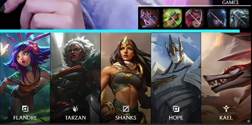 AL选用:Flandre狼母;Tarzan纳亚菲利;Shanks加里奥;Hope希维尔;Kael妮蔻