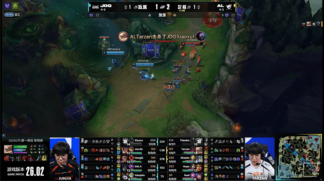 虎扑01月31日讯GAME3:JDG蓝色方;AL红色方