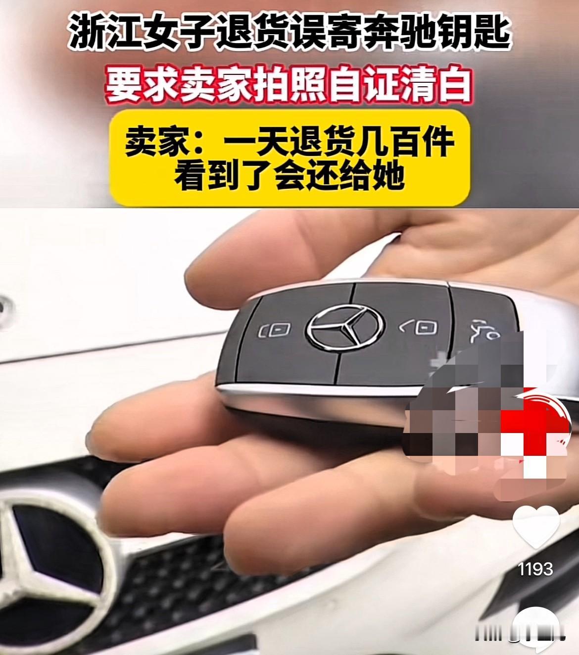 太大意了!浙江嘉兴,女子网购衣服试穿后退货,不慎把奔驰钥匙落进退货包裹。结果包裹发走,钥匙也没了,重新配一把要6000多块。然而商家说:包裹第三天就发走了,流程没问题,然而女子却让商家拍照自证清白,这可真是说不清了! 很多人开始各打五十大板,说“双方都有责任”。但这话,其实不公平。 我认为衣服能退,钥匙是你自己的财物。不是商品的一部分,更不是商家该为你兜底的东西。 就像你把手机落在出租车上,司机没义务为你的疏忽买单。商家能帮你找,是情分,找不到,也不是罪过。 生活里,最怕的不是犯错,而是把自己的失误,变成别人的责任。 这不是谁冷血,而是最基本的边界。成年人要明白一句话。粗心可以原谅,代价必须自己承担。大家说呢? (信息来源:热度新闻)