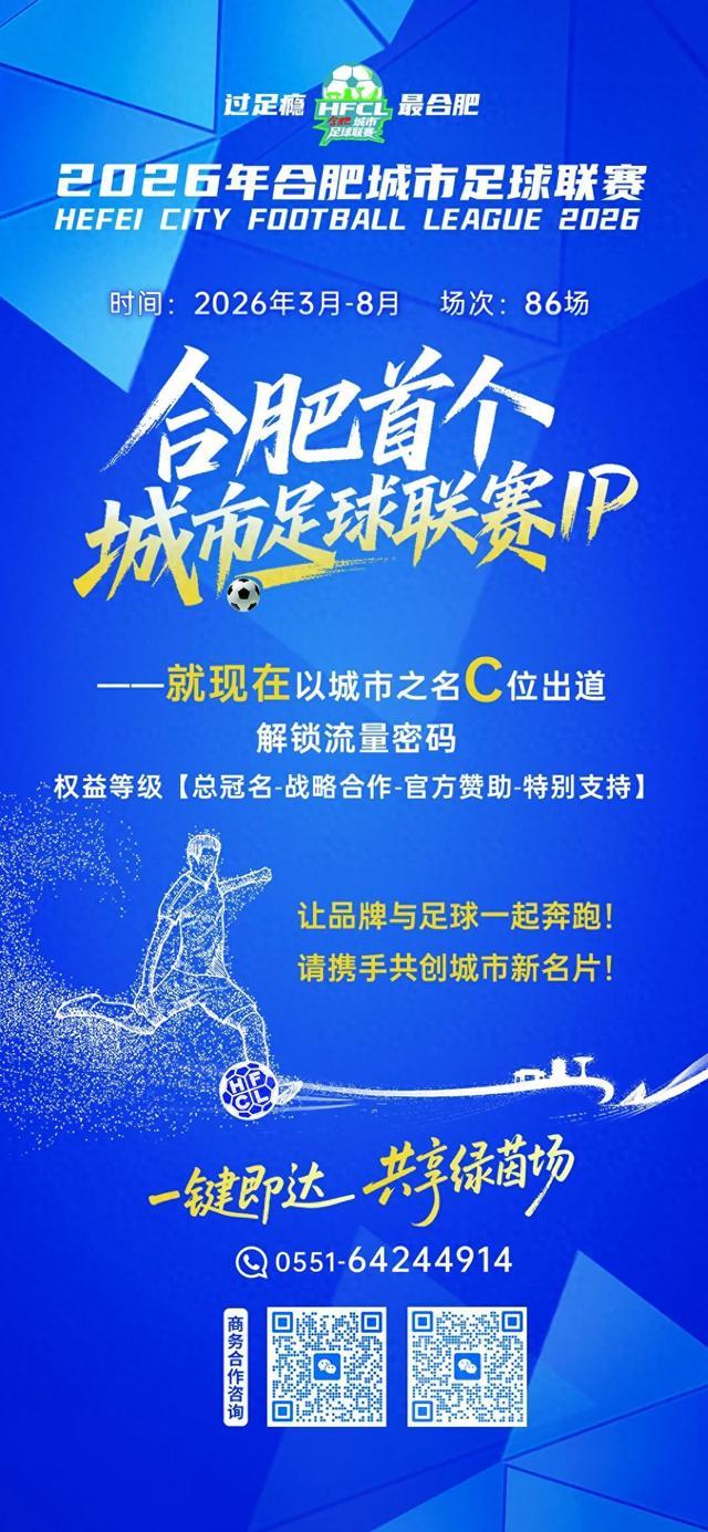 还在等什么?你的品牌故事,你家的招牌菜,你的全家福甚至宠物萌照……这些鲜活的日常,都可以在这里与足球相遇,与城市的欢呼、球员的汗水、市集的烟火气交织,写入合肥崭新的绿茵篇章。