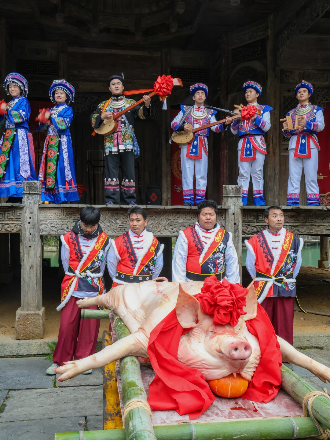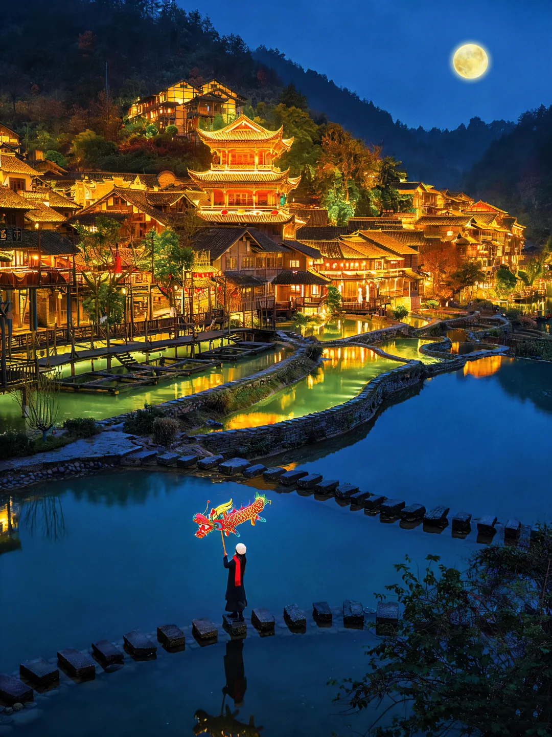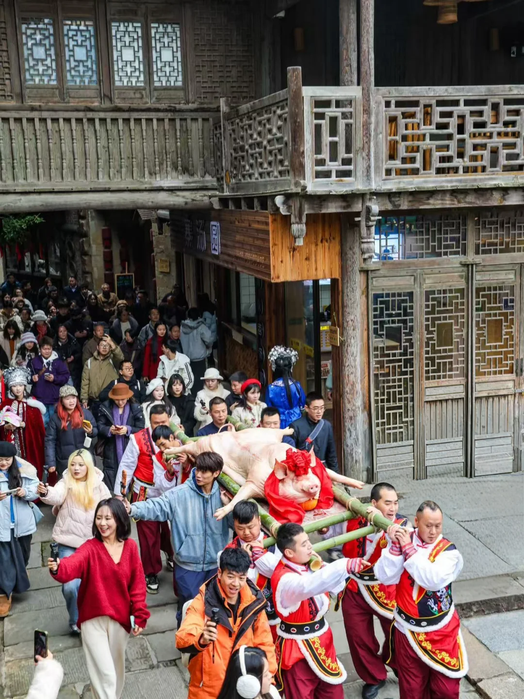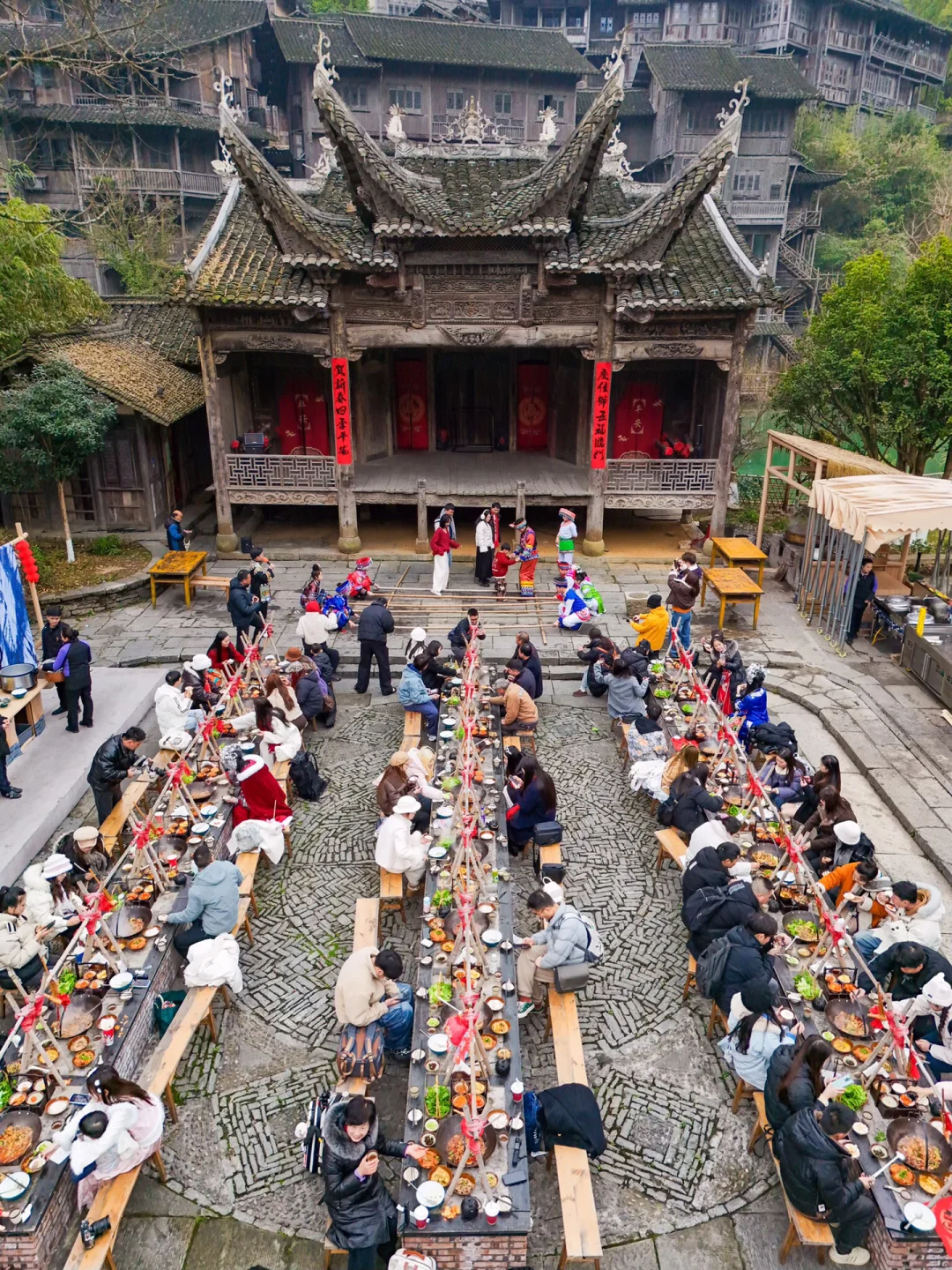 𝘿𝙖𝙮 1∶到达乌江寨➠独竹漂➠年猪仪式➠八方宴➠掌灯➠傩舞火秀➠板凳龙巡游➠火壶➠打铁花➠无人机灯光秀➠篝火晚会➠烟花盲盒➠夜景打卡拍照