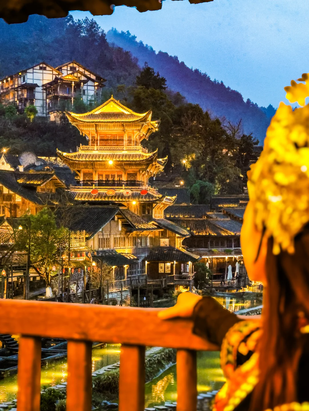 这里白天青瓦楼阁与山林构成绝美画卷,傍晚万家灯火亮起,灯火璀璨,年味浓到溢出来✨又似穿越到千与千寻世界!真的太惬意啦!
