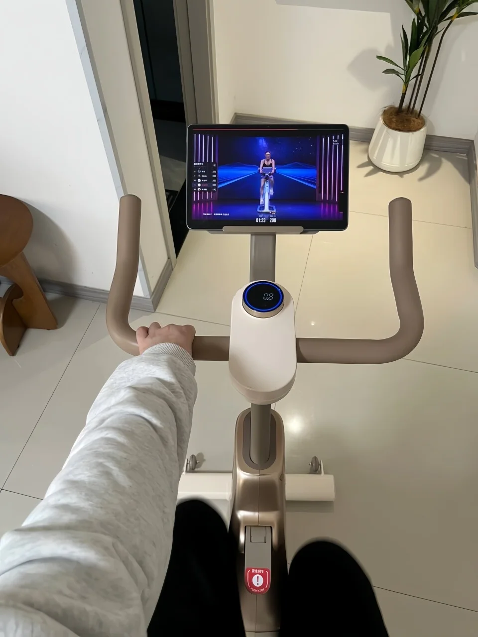 ➡️再试的小金鹿,机身很扎实,骑起来的稳度很不错,俯身站骑都可以,完全不会晃。蓝牙连上教练课,全程自动调阻,不用自己折腾调阻力,按照口令能立刻找对发力感,真的是有效跟练👍一节课下来浑身大汗,而且阻力调节特别细腻,没有卡顿感,骑着不仅没有声音,膝盖也不觉得难受,有时候使劲蹬都不怕伤膝盖,用着挺安心。
