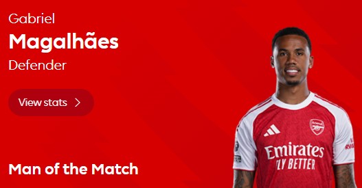 赛后,本场贡献10次解围的加布里埃尔以55%的得票率当选本场球迷票选最佳。
